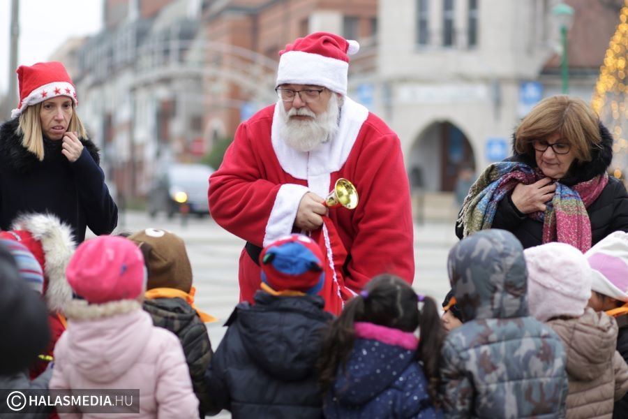 Még ezekben a percekben sem késő elindulni otthonról azoknak a gyerekeknek, akik szeretnének találkozni a kiskunhalasi Mikulással. A Télapó ugyanis a tervek szerint egészen sötétedésig kint lesz az Advneti tér forgatagában.