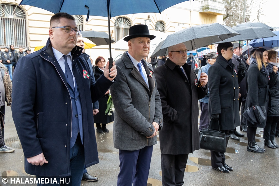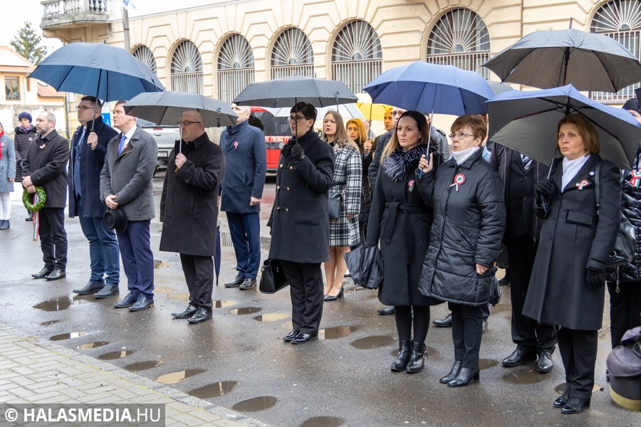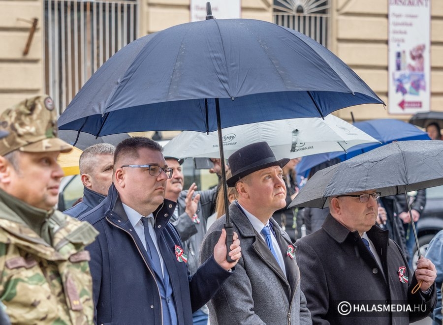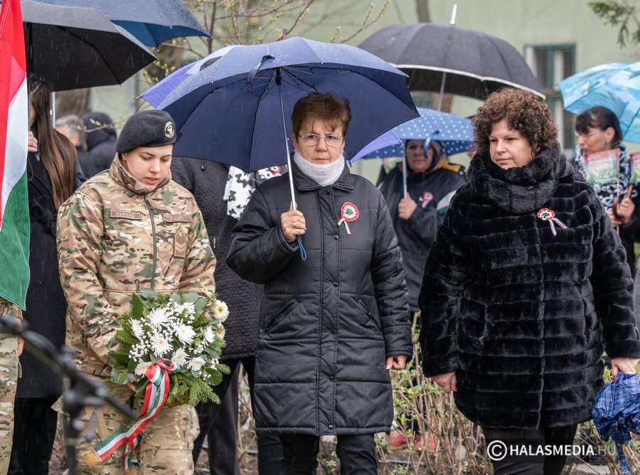 Időjárásban történelmi hasonlóság a 48-as forradalom halasi ünnepén. Szemerkélő esőben mondott nyugatkritikus beszédet Hunyadi Péter képviselő az Országzászló emlékmű előtt. Városvezetők és civilek koszorúztak a múzeumban, majd a Petőfi szobornál közösen szavalták el a Nemzeti dalt az emlékezők.