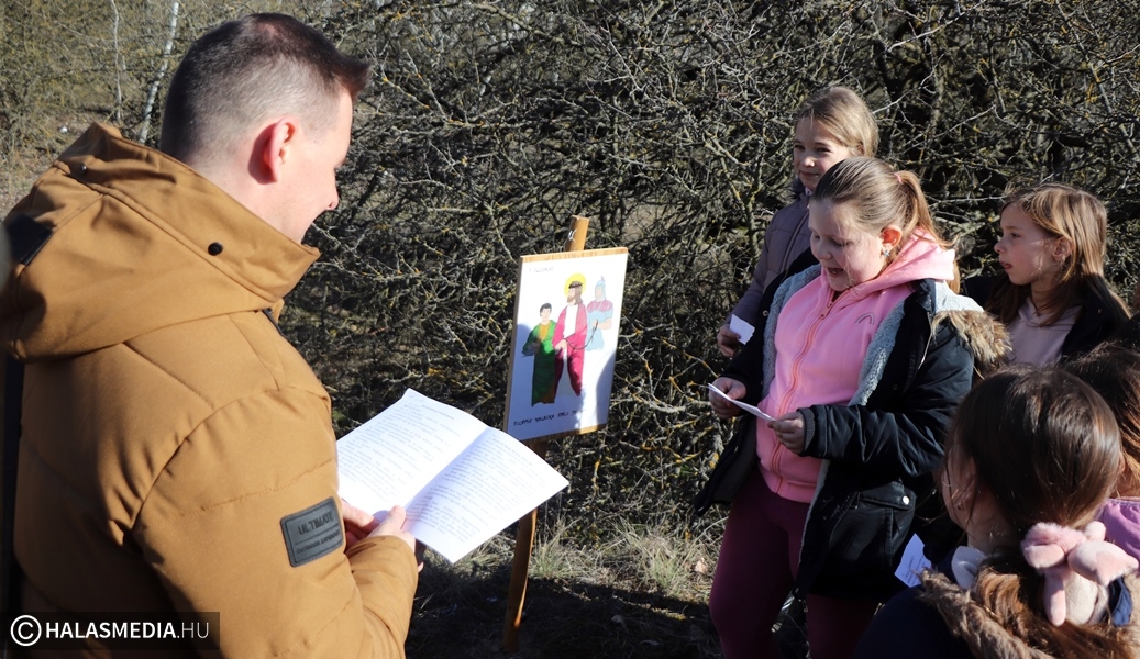 Egymás után érkeztek a Szent József Katolikus Általános Iskola osztályai a Kecelre vezető út melletti Rekettyésbe. Péntek délelőtt kissé csípett a hideg, azonban a napfény, a friss levegő mindenért kárpótolt. - Régi hagyomány ez a Szent József Katolikus Általános Iskolában, hogy húsvéthoz közeledve egy kicsit gyermek centrikusabb programot szervezünk a diákjainknak. Ilyenkor kijövünk a természetbe, és a mi elnevezésünk szerint egy buckás keresztúton járjuk végig azokat a stációkat, amelyek Jézus szenvedését szimbolizálják. Osztályonként a diákjaink bebarangolnak egy közel egy órányi utat a szabad levegőn, így a reményeink szerint sokkal közelebb kerül hozzájuk ez a téma - fogalmazott az esemény szervezője Kiss Péter.