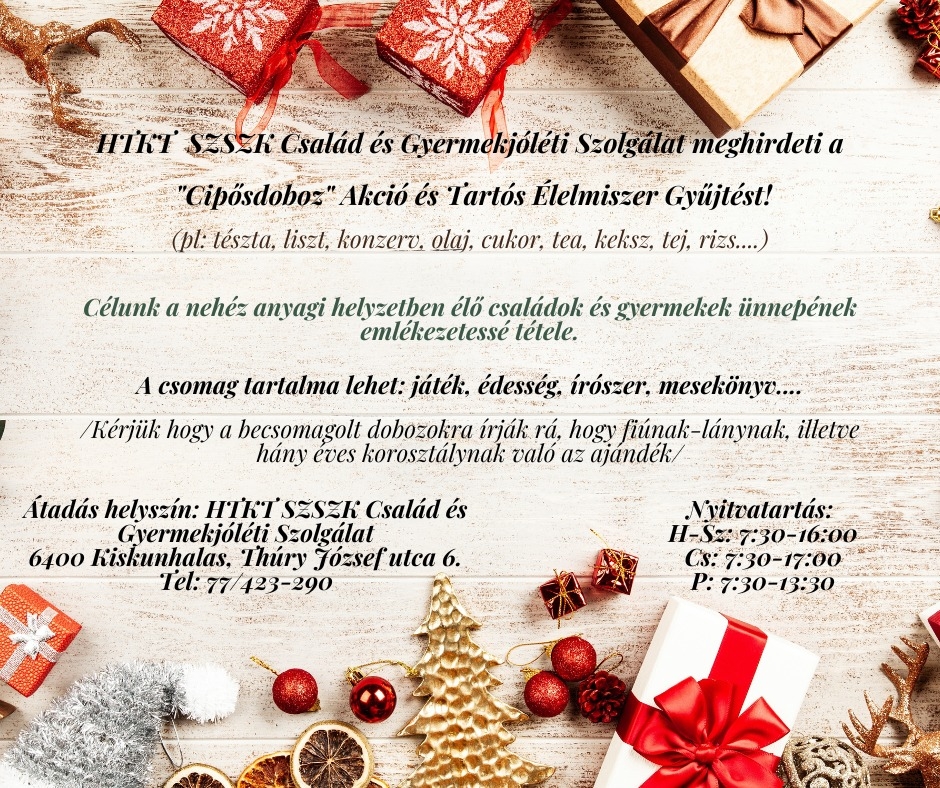 Az adományt szerdán reggel személyesen vitték át a Család- és Gyermekjóléti Szolgálat Thúry József utcai központjába. A diákokat és az őket kísérő pedagógusokat Erdődi Anita szakmai vezető fogadta. A szolgálatnál egészen december közepéig várják azokat, akik szeretnének részt venni az akcióban. Nemcsak a cipősdoboz-gyűjtés zajlik, hanem szívesen fogadnak tartós élelmiszereket, meleg kabátokat, pulóvereket, takarókat is. A tervek szerint még az ünnepek előtt kiviszik a rászorulók részére az összegyűlt adományokat.