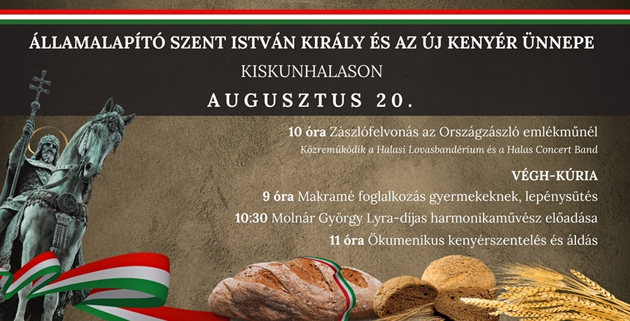 Az ünnepi hétvége programjai már pénteken, augusztus 18-án elkezdődnek Kiskunhalason. A Hilring József Lovasparkban reggel 9 órától kezdődnek a Grass Masters (díjugrató sorozat) II. fordulójának versenyszámai és vasárnapig tartanak. A Sóstó partmentén található nagyszínpadon szabadtéri mozizást kínálnak szervezők.