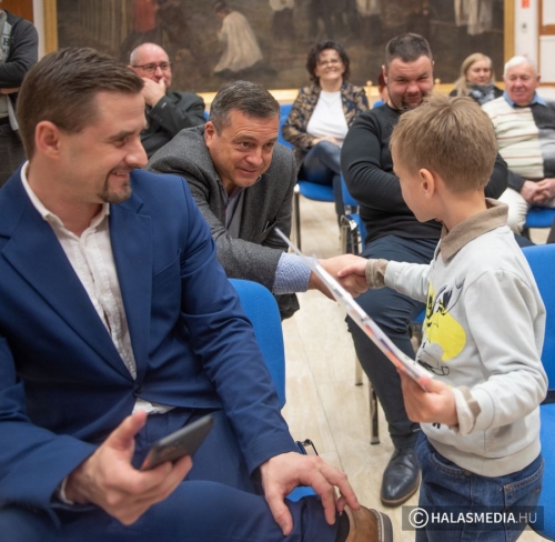 A képviselői köszöntő után Varsányi Vera állt a közönség elé idézte fel részletesen Csenki Ferenc életútját a kezdetektől. Ebből a sport és a halasi ökölvívás meghonosítása terén elért elévülhetetlen érdemei hangsúlyozása mellett személyesebb ismereteket is megosztott a jelenlévőkkel. Megismerhettük az apát, a férjet, a nagyapát és a dolgozó embert, akit hosszú földi pályája során sokféle helyzetbe és helyszínre sodorta az élet. Varsányi Vera aztán Cseh Dávidot kérte meg, hogy Szent-Györgyi Albert, egy a sportról szóló gondolatát olvassa fel. A 8 éves fiatalember, aki egyébként az ovis ökölvívó csoport egyik tagja, óriási tetszést aratott.