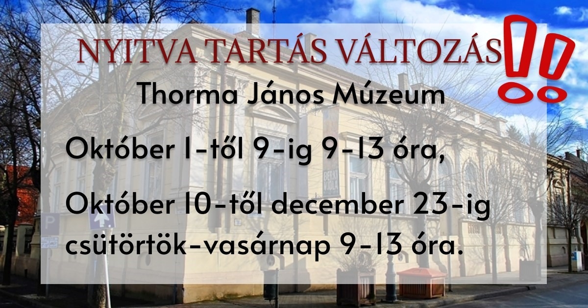 A Thorma János Múzeumban október 10-től december 23-ig csütörtöktől vasárnapig tartanak majd nyitva 9-től 13 óráig. A Berki Galéria pedig keddtől péntekig előre bejelentett időpontban lehet majd látogatást tenni.