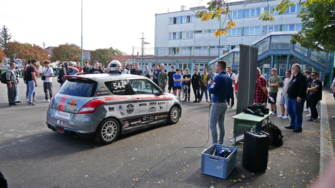 Pénteken délelőtt erről a küzdelmes munkáról is mesélt Csuti Zoltán az intézmény diákjainak. Elhozta a versenyautóját is, hogy az iskola gépész szakos tanulói közelről is megszemlélhessék a járművet.
