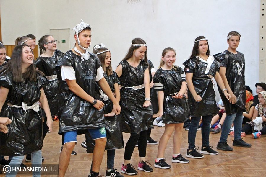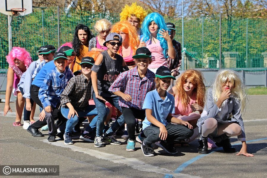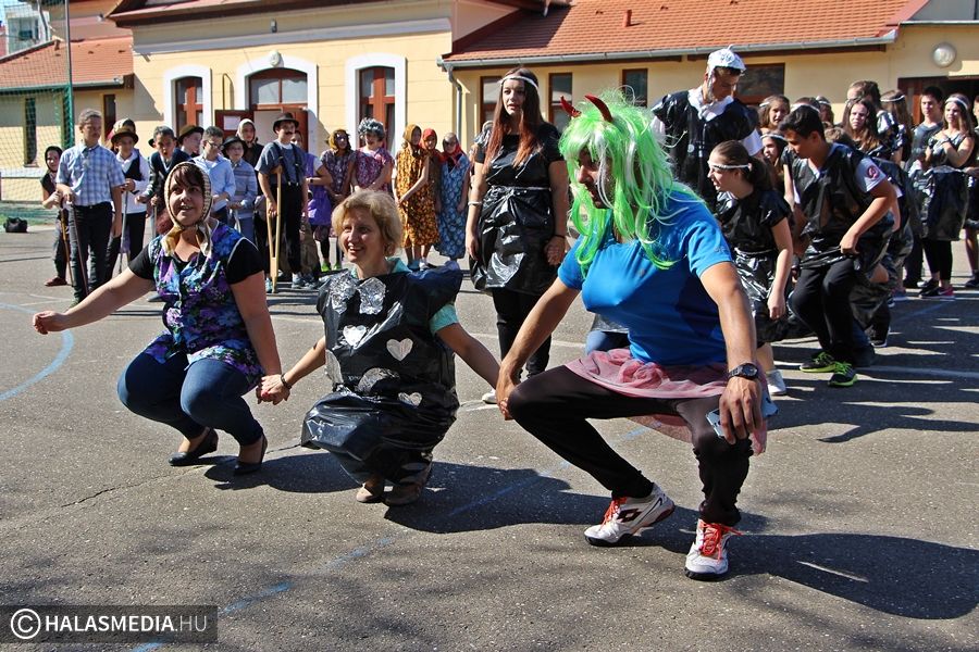 Nem maradhatott el a közös torna sem, az intézmény udvarán guggolások és egyéb kellemesen átmozgató feladatok vártak a gólyákra. Külön érdekesség, hogy nem csak a kicsiknek, hanem az osztályfőnökeiknek is jelmezt kellett húzniuk.