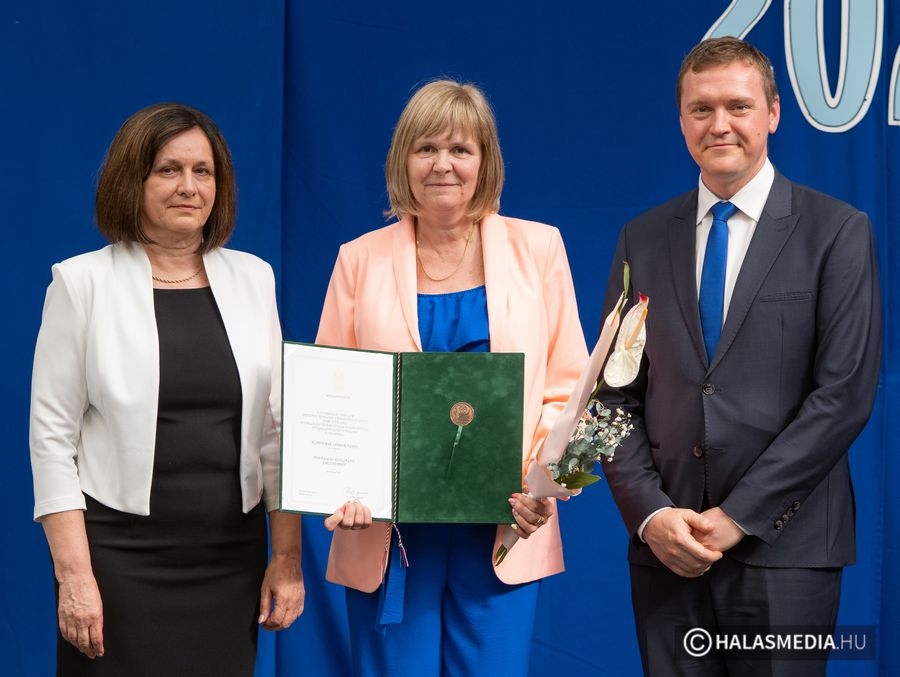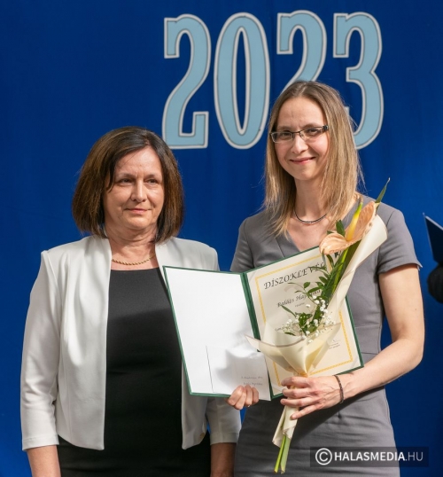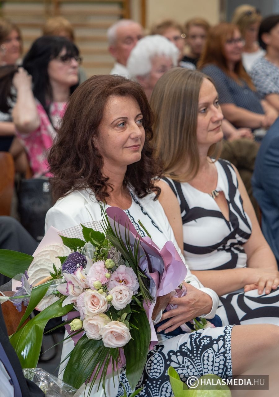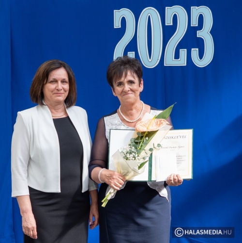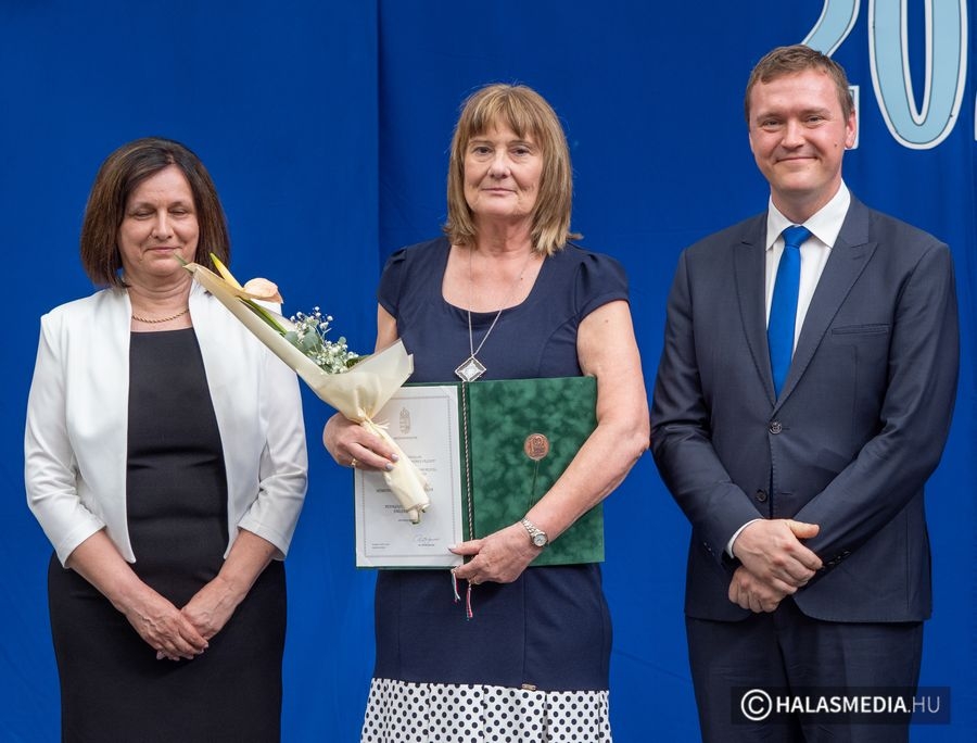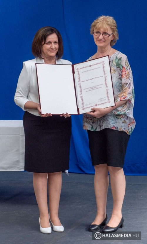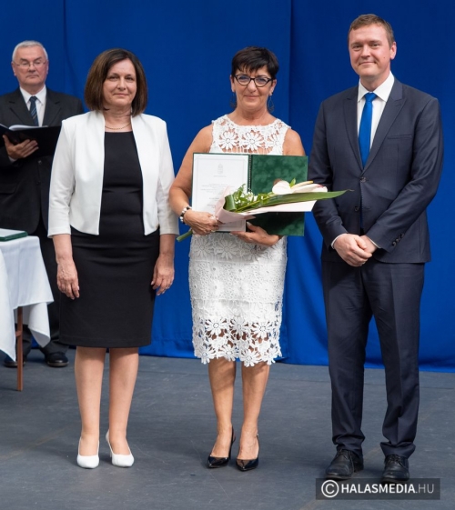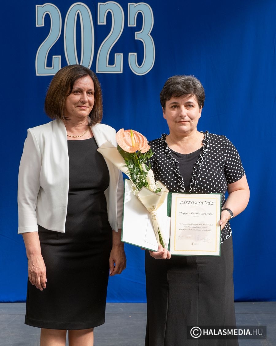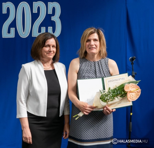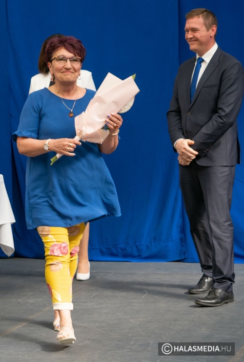 A tanévben két pedagógus is rangos elismerésben részesült, nagy tapssal köszöntötték őket. Laskovicsné Terzics Edit, a Kiskunhalasi Kertvárosi Általános Iskola igazgatónője Bács-Kiskun Megye Ifjúságának Neveléséért díjat vehetett á, akit Fülöp Róbert polgármester virágcsokorral köszöntött.