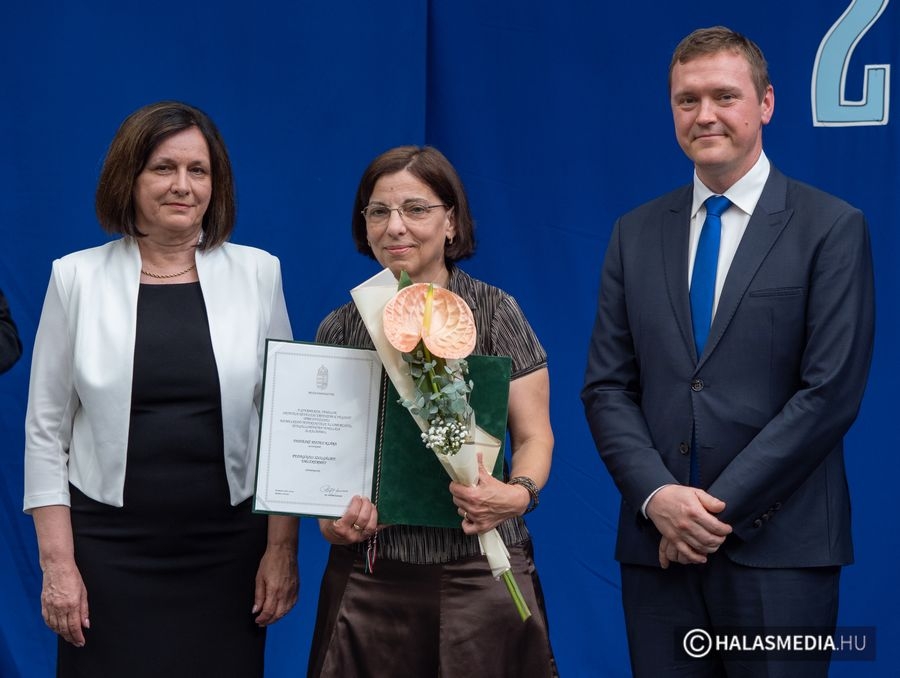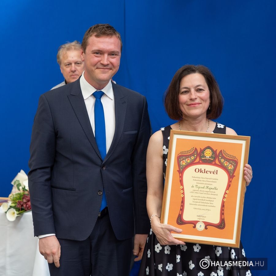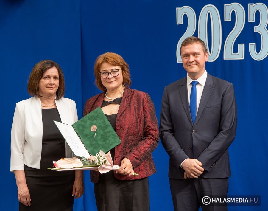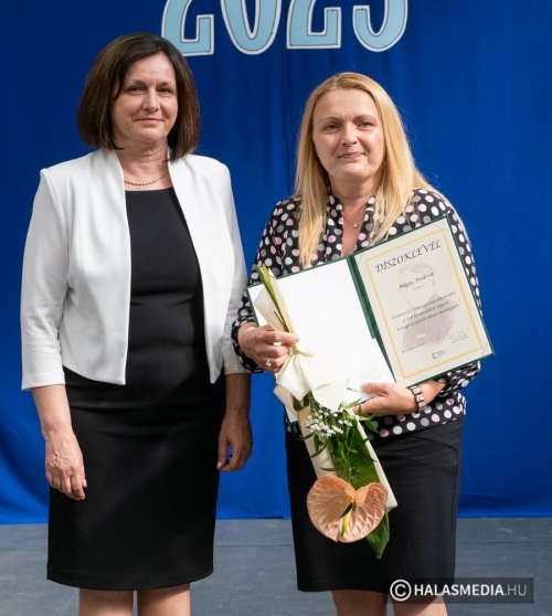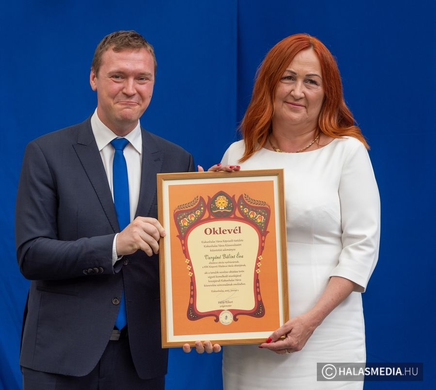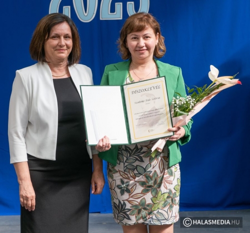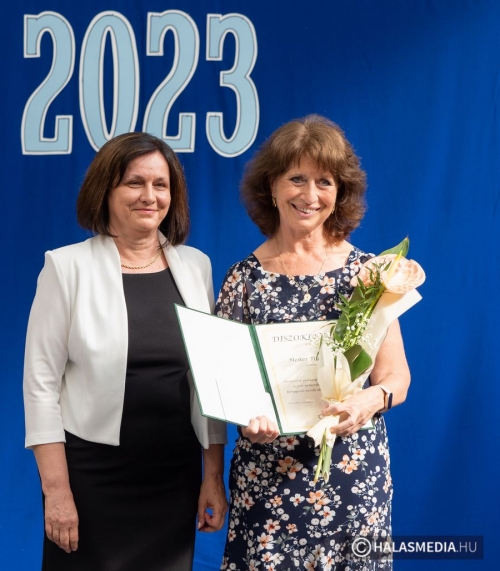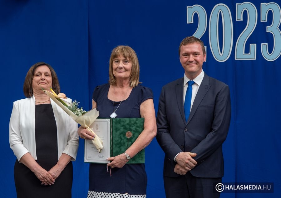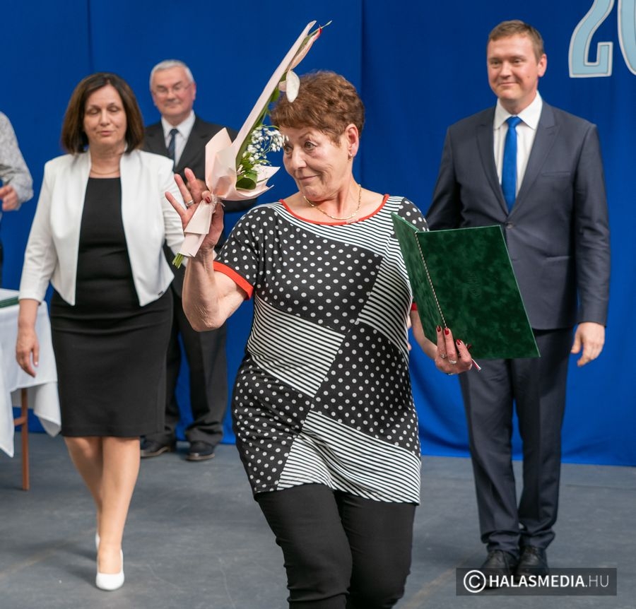 A tanévben két pedagógus is rangos elismerésben részesült, nagy tapssal köszöntötték őket. Laskovicsné Terzics Edit, a Kiskunhalasi Kertvárosi Általános Iskola igazgatónője Bács-Kiskun Megye Ifjúságának Neveléséért díjat vehetett á, akit Fülöp Róbert polgármester virágcsokorral köszöntött.