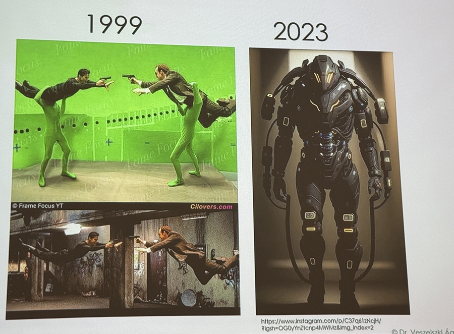 Az előadás egyik központi kérdése az volt: használjuk vagy ne használjuk az AI-t? A válasz nem egyértelmű, hiszen a lehetőségek mellett komoly veszélyek is rejlenek benne. Abban azért szilárd véleményt formált meg, hogy kikerülhetetlen és sok esetben hasznos, segítheti a munkát. A hallgatóság példák sokaságán keresztül ismerhette meg az AI-val való hasznos munkát és a visszaélések formáit egyaránt.