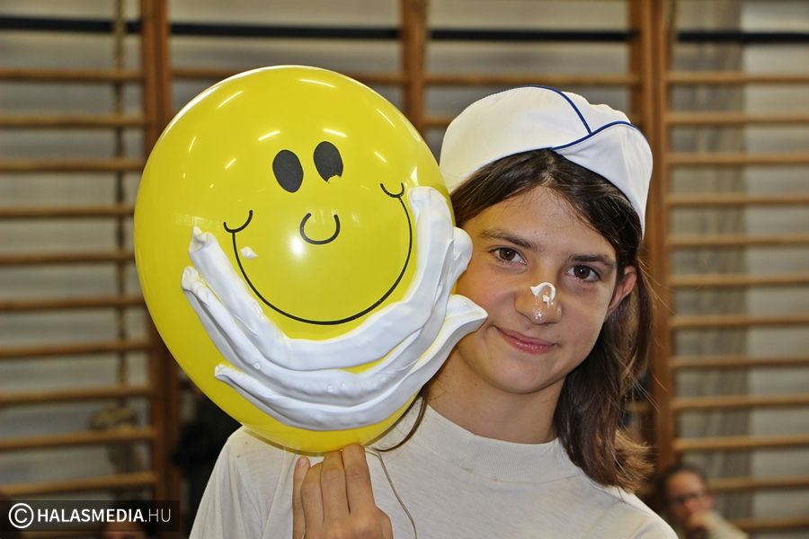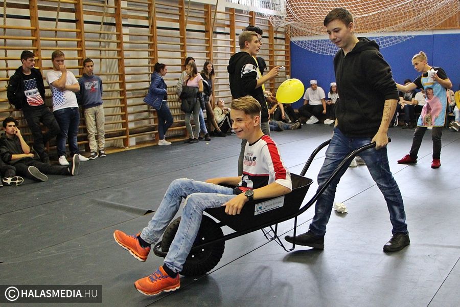 - Szomorúan tapasztaltuk, hogy a halasi középiskolákban rajtunk kívül mindenhol szokott lenni gólyabál. Ezért döntöttünk úgy, hogy idén szervezünk a Váriba is egy ilyen bulit. Hússzú hónapokat töltöttünk ötleteléssel, de megérte, mert remek feladatokat sikerült kitalálni. A gólyák nagyon aranyosak, semmire nem mondanak nemet, mondjuk, ehhez az kell, hogy mi ne megalázni akarjuk őket. Semmi durvát nem kérünk, de amit kiadunk feladatnak, azt nem lehet visszautasítani. A nap folyamán tolták egymást talicskában, lufit borotváltak és énekeltek, táncoltak. Remek volt minden – árulta el Henrietta.