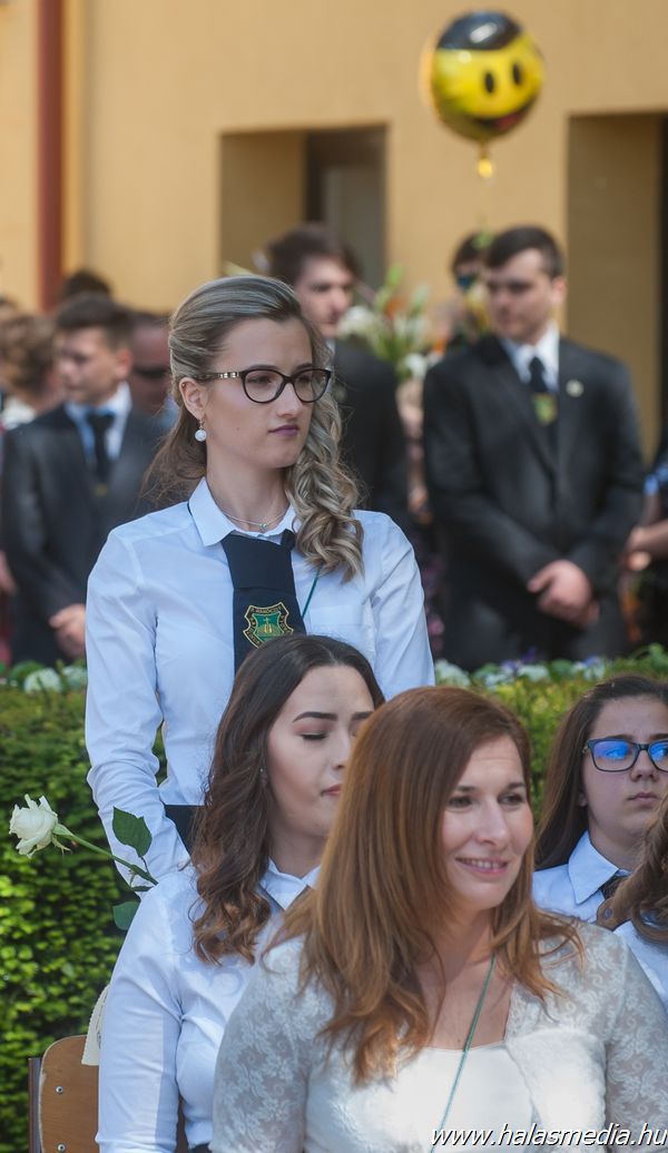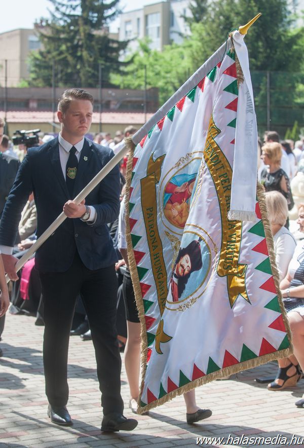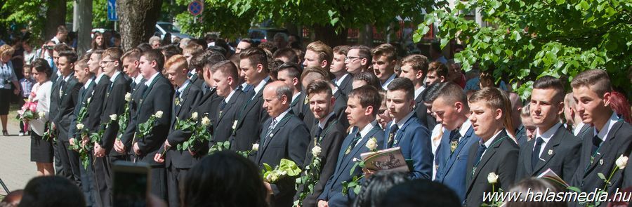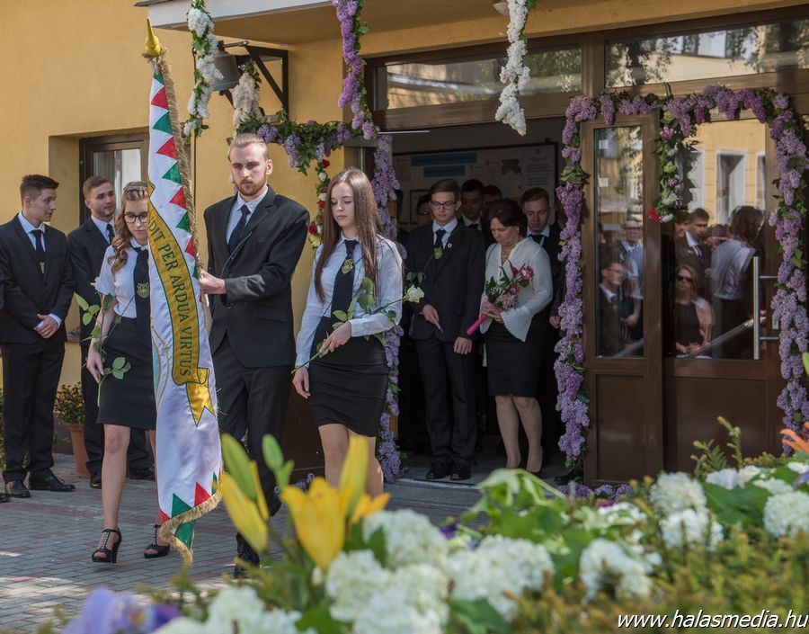 Pontban tíz órakor az iskolazászló mögött vonultak be a II. Rákóczi Ferenc Katolikus Gimnázium és Szakgimnázium végzős diákjai a ballagási ünnepség helyszínére, az iskola udvarára. Elsőként osztályfőnökük, Molnárné Faragó Melinda vezetésével a 12.a, majd Gurály Attilával a 12.b, legvégül pedig Kun Hajnalka társaságában a 12.c érkezett meg. Az 105 éves intézmény kórusa egy dallal, majd Tóth Anna egy verssel is elköszönt a végzősőktől. A ballagók nevében Madaras Anna beszélt, ezt követően pedig a Rákóczi-címeres zászlót vette át Kerekes Tamástól Szabó Dávid, a lobogóra pedig rákötötték a búcsúzó osztályok a saját szalagjaikat.