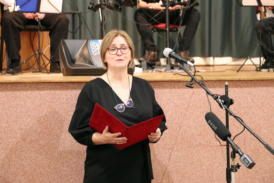A Bárka nagytermében zajlottak tovább az események, itt Ádám Zsuzsanna intézményvezető köszöntötte a Szociális Munka Napja és az adományozás alkalmából megjelent vendégeket.