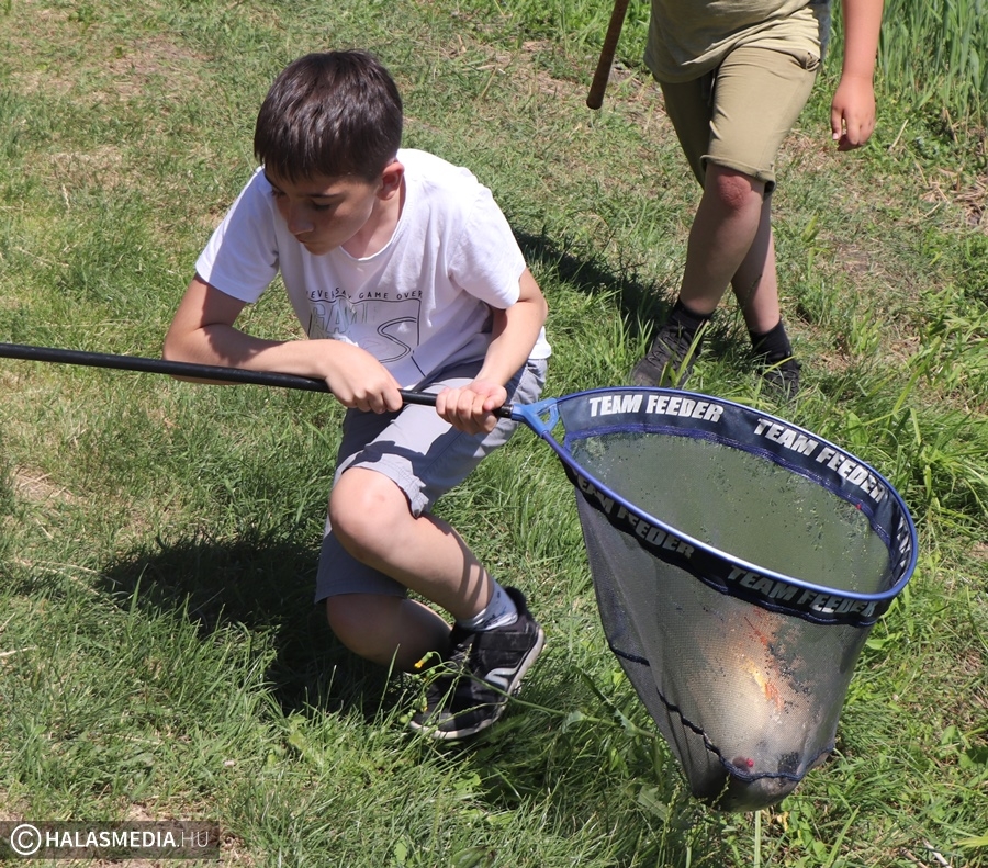 Neves vendégek, televíziós stábok is megfordultak az idei horgásztáborban. Ezúttal is megszervezte az évek óta kedvelt programját a Sóstó Sporthorgász Egyesület és a Haldorádó Team. A helyszín ismét a Sóstó és az Ezüst tó volt, amelyek ideális környezetet biztosítottak. Óriási érdeklődés volt a tábor iránt, amelynek menetrendjét úgy állították össze, hogy minden napra jusson élmény. Persze Jáger Szabolcs és Juhász Gábor táborvezető megfogalmazása szerint a lényeg az volt, hogy minél több időt töltsenek el a vízpartokon, a természet közelében. Amikor csak lehetett horgásztak, van, aki itt fogta meg élete első halát. - Külön öröm volt, hogy Döme Gábor világbajnok sporthorgász végig velünk volt, tőle nagyon sok praktikát megtanulhattak a gyermekek - mondta Jáger Szabolcs.