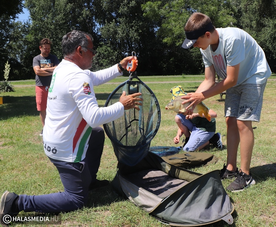 A tábor ötödik napja, mint eddig minden esztendőben versennyel záródott. Párosokat alakítottak ki, közel negyvenen foglalták el a Sóstó partját. Döme Gábornak mindenkihez volt egy jó szava és hasznos tanácsokat adott a fiataloknak. - Minden itt kezdődik el. Ha ebben a korban megszeretik a horgászatot, a természetet, akkor nyert ügyünk van. A horgászat sport és természetes, hogy a halakat, miután megvolt a mérlegelés, azonnal vissza kell engedni az élőhelyükre. Ezt is megtanulták a gyermekek - nyilatkozta a világbajnok sporthorgász. A fiatalok pedig ügyesek voltak, ottjártunk idején is több szép pontyot, dévérkeszeget akasztottak.