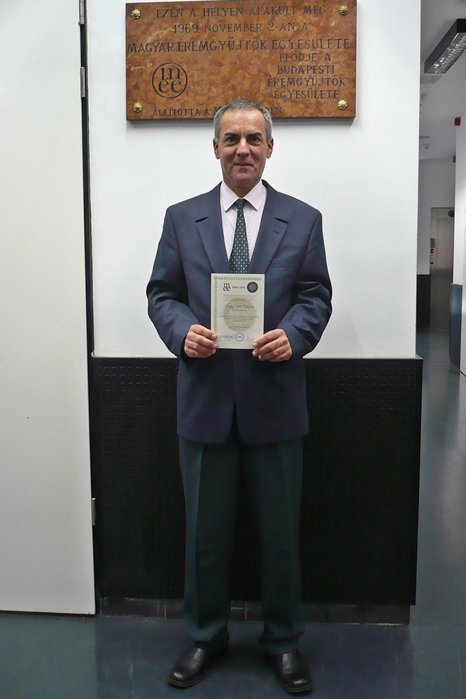 - Előadás hangzott el az elmúlt 50 évről, az éremgyűjtés várható jövőjéről. A ház előterében márvány emléktáblát avattunk annak emlékére, hogy itt alakult meg az egyesület 1969-ben. Az alapító tagok és az érdemes tisztviselők, titkárok ezüst jubileumi díszjelvényt és oklevelet kaptak munkájuk elismeréséül. A jelvényen Szent István király ezüst dénárja látható. Kiskunhalasról ketten vettünk részt az eseményen. Nagy Tóth Dezső titkárunk és jómagam, mint alapító tag, elnök.