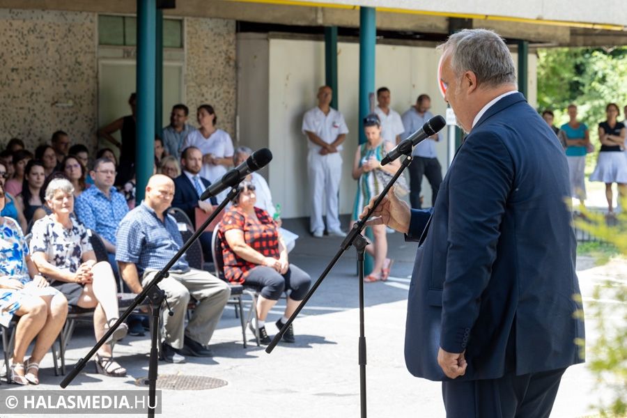Semmelweis nap alkalmából tartottak ünnepséget ma délután a Kiskunhalasi Semmelweis Kórház a Szegedi Tudományegyetem Oktató Kórházának udvarán. Az eseményen több, mint 50 egészségügyi dolgozót tüntettek ki különféle díjakkal. Mint elhangzott, nagy elismerés jár mindenkinek, amiért a kórház kollektívája közösen le tudta győzni az elmúlt évek komoly akadályait is.