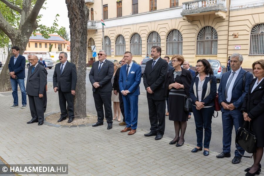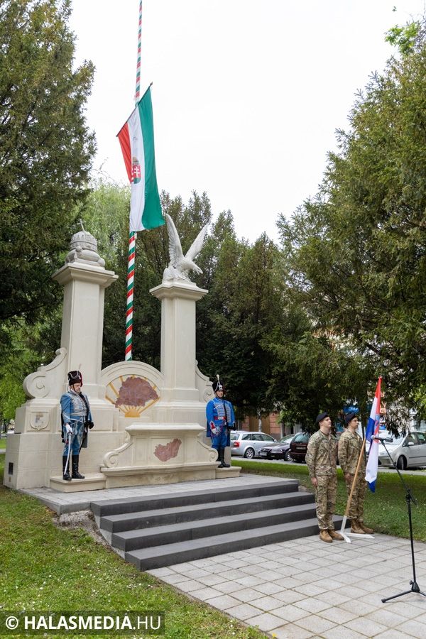 A jelenlévők a zászlófelvonás után közösen vonultak át a rendezvény következő helyszínére, a Thorma János Múzeumba.
