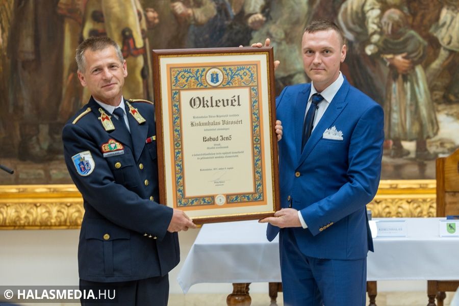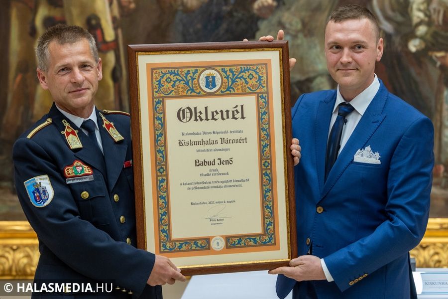 A képviselőtestület döntése nyomán, Kiskunhalas Városért díjat vehetett át Babud Jenő tűzoltóezredes.