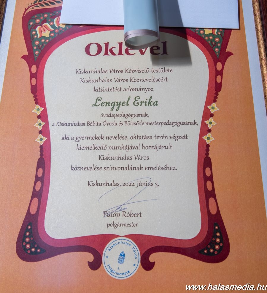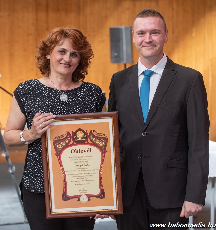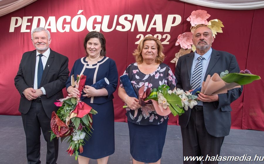 Először a Kiskunhalas városi pedagógus díjakat adták át. Az önkormányzat „Kiskunhalas Város Közneveléséért” díjat adományozott Kádár Szilárdnak, a Kiskunhalasi Felsővárosi Általános Iskola tanítójának. Lengyel Erika óvodapedagógusnak, a Kiskunhalasi Bóbita Óvoda és Bölcsőde mesterpedagógusának, intézményvezető-helyettesnek. Makai Imre tanítónak, a Szent József Katolikus Általános Iskola és Óvoda történelem szakos tanárának, gyermek- és ifjúságvédelmi felelősnek. A kitüntetéseket Fülöp Róbert Kiskunhalas polgármestere adta át.