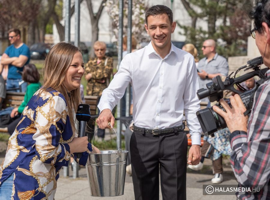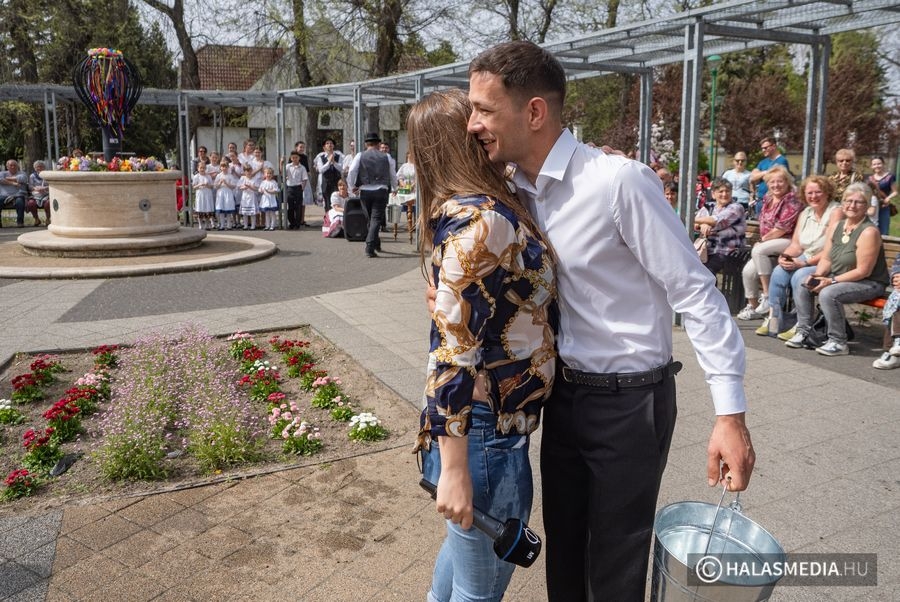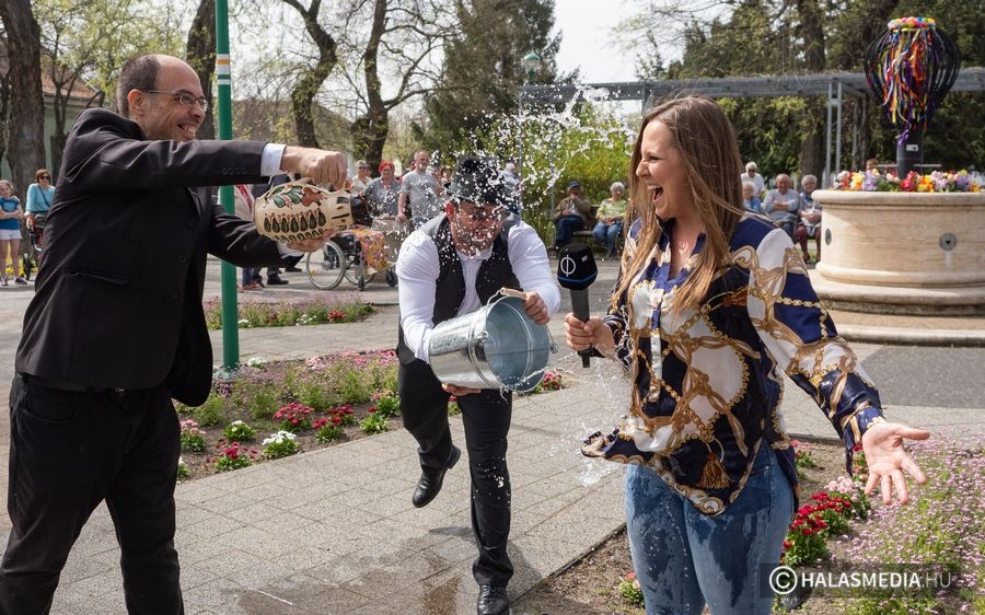 A táncok után a csoport lánytagjai is megkapták, ami ilyenkor lányoknak, asszonyoknak kijár, az-az meglocsolták őket a legények, hogy ne hervadjanak el. A locsolásból az M1 Televíziónak tudósító Molnár H. Boglárka is kapott, még pedig élőben. A vizes jelenet után a locsolkodó fiúk elnézést kértek a hidegzuhanyért a riporternőtől, aki egyébként azt nem vette zokon. A Halas Televízió eseményen készített felvételeit a jövő heti Kultúrkép című magazinban láthatják olvasóink csütörtök este 19 órától!