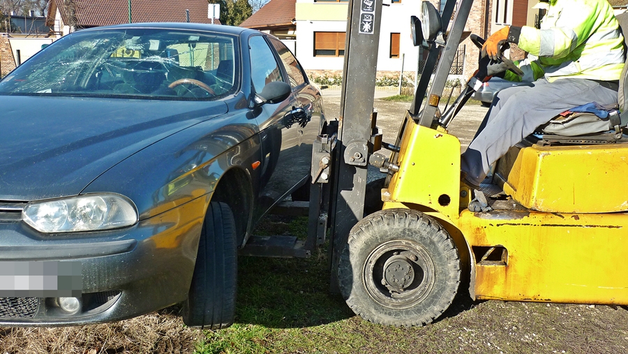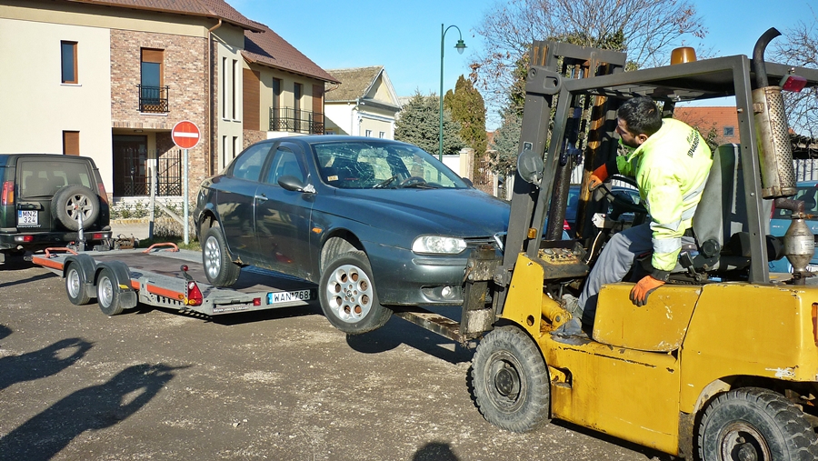 Innen már az autómentőkön volt a sor. Az Alfát targonca tette fel a szállítójárműre. Ilyenkor az autómentő telephelyére kerül a jármű. A tulajdonosnak ekkor még mindig van arra lehetősége, hogy kiváltsa az autót, ha ezt nem teszi, akkor bontás vár rá. A tulajdonosok általában nem mennek el az ilyen autókért. Ez talán csak egy-két esetben fordul elő – mondta Bugyi László autómentő. Aki azt is hozzáfűzte, hogy a már használhatatlan, a forgalomból kivonásra kerülő járművektől nem így kellene megszabadulni, hanem bontóknál kell leadni.