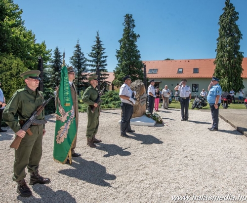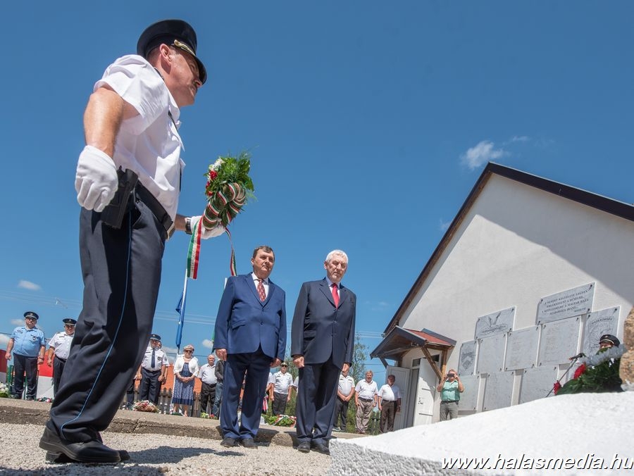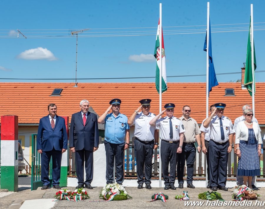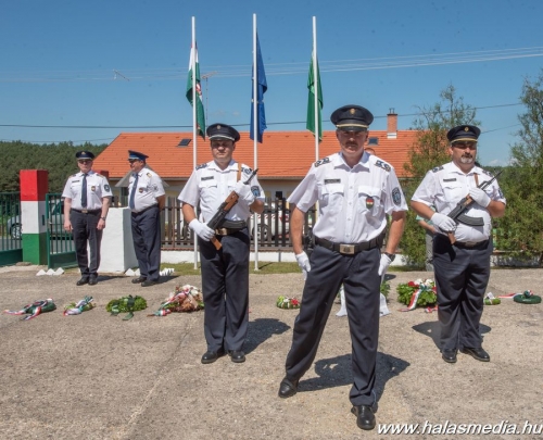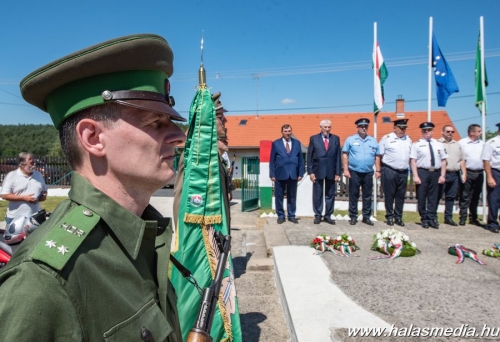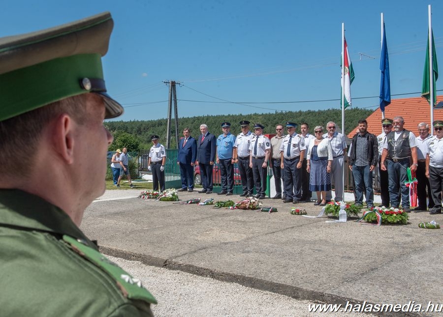 A múlt vasárnapi ünnepségen az egykori határőrök, szimpatizánsok és a mai határrendészek mellett két volt országos parancsnok Kiss Kálmán és Béndek József határőr tábornokok is részt vettek és koszorút helyeztek el az emlékhely központi emlékművénél. Himnusszal és a Szent László indulóval kezdődött az ünnepség, majd következett az emlékmű koszorúzás.