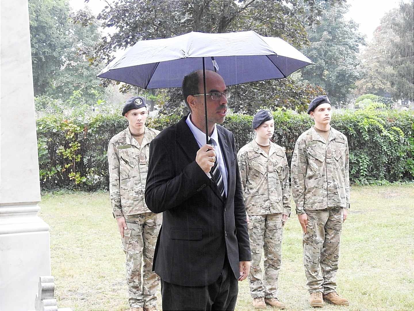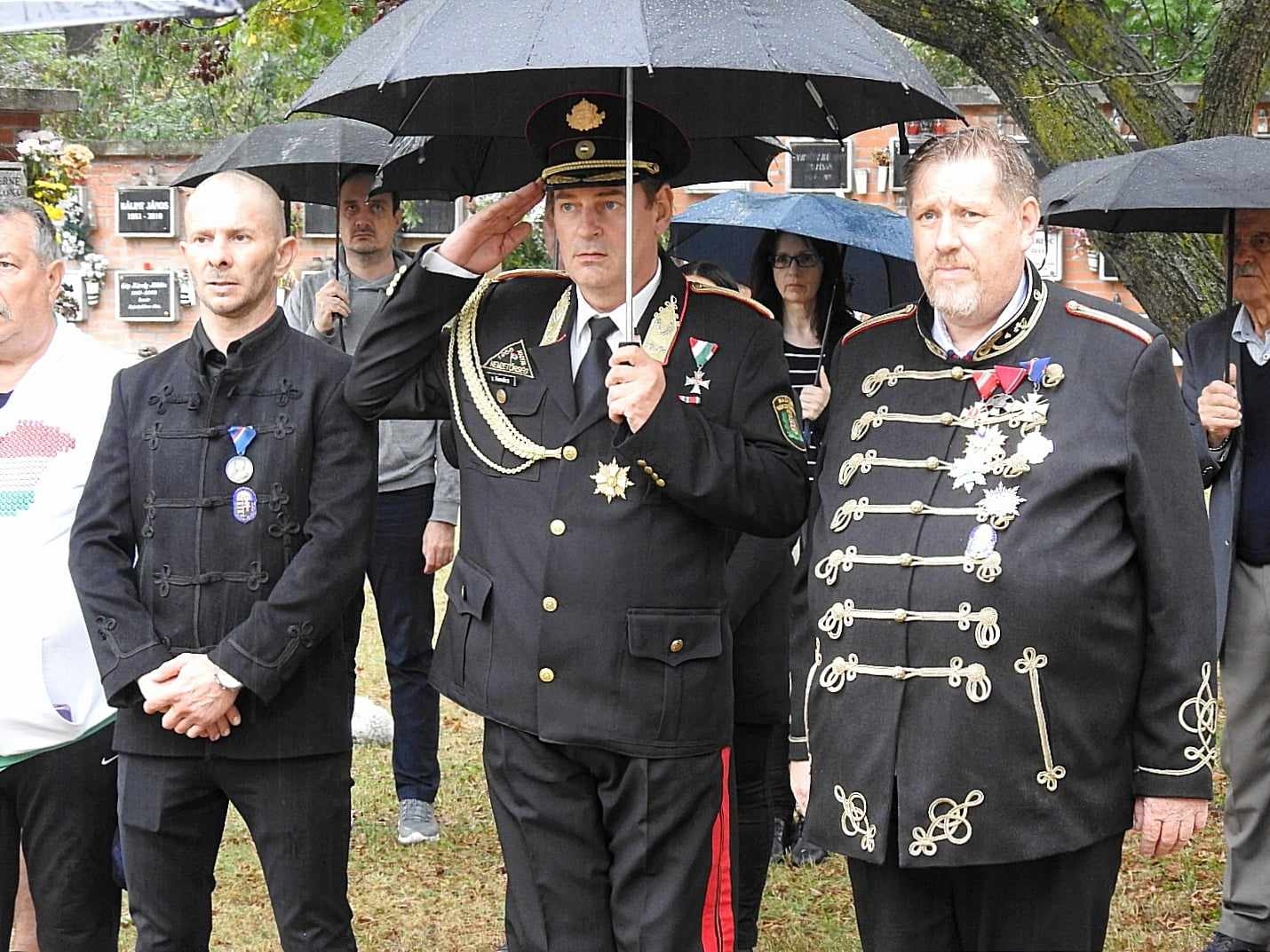 A kitartó eső ellenére megvalósult eseményen nemzeti imádságunk, a magyar Himnusz elhangzása után Végső István történész, a kiskunhalasi Pásztortűz Egyesület elnöke beszélt vitéz Balogh Iván (1906-1942) életéről a katolikus temetőben.