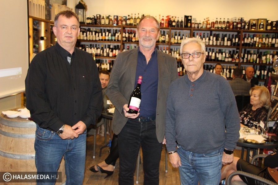 Eszterbauer Jánost a meghívó Halasi Borklub képviseletében Bordás Zoltán és Séllyei András köszöntötte.