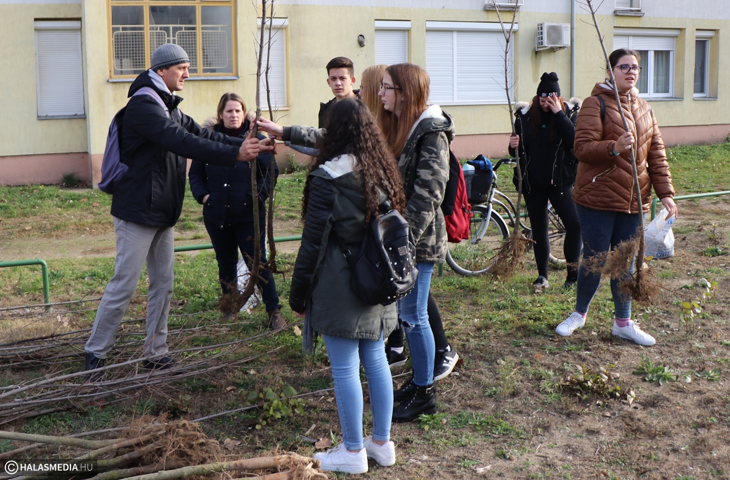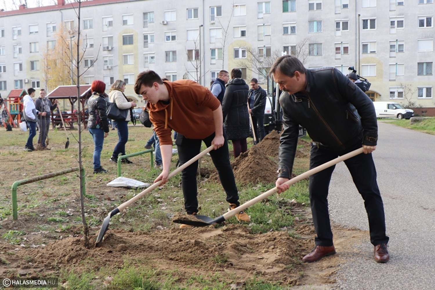 Az Esze Tamás lakótelepen hetven, a Karacs Teréz utcában pedig harminc facsemetét tettek földbe kedden délelőtt a Kiskunhalasi Szakképzési Centrum diákjai. A Jövőnkért a jövő szakemberei program keretében a Városgazda Zrt. segítségével, Bagi Bertalan városi főkertész szakmai útmutatásaival valósult meg az ültetés.