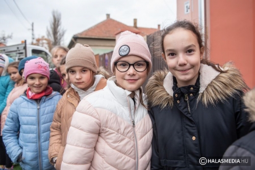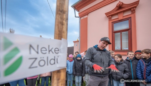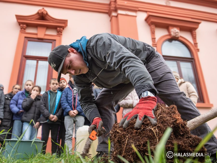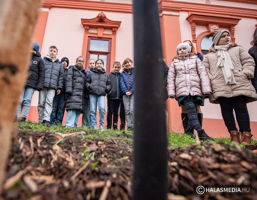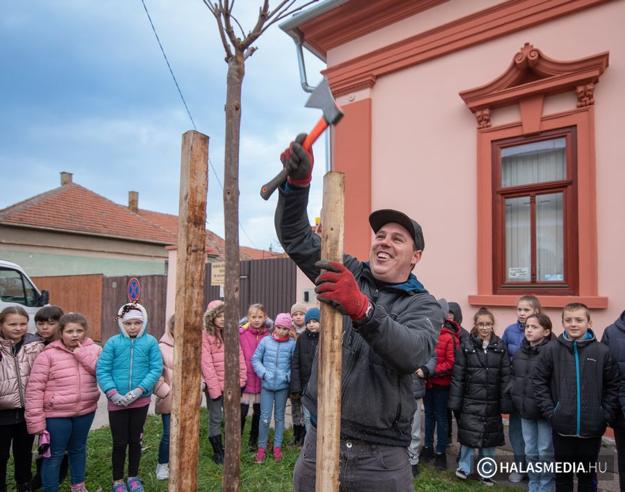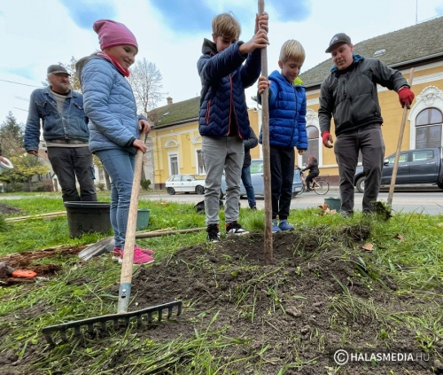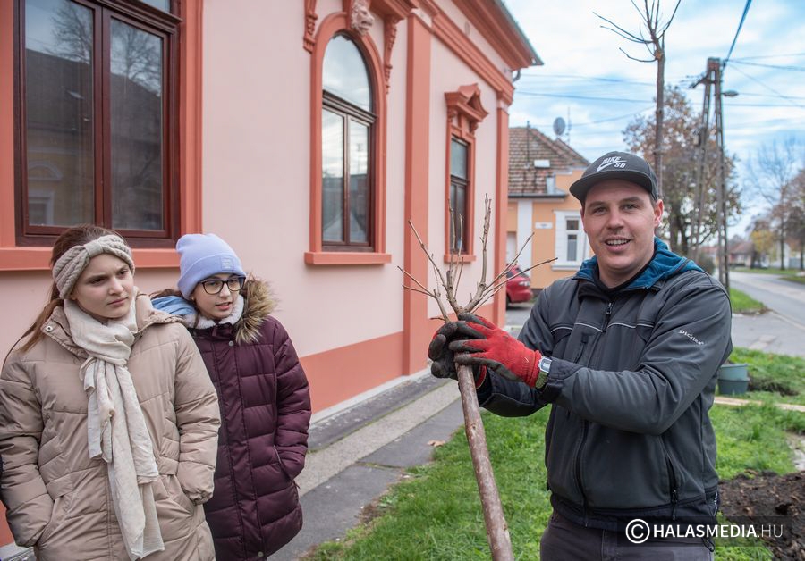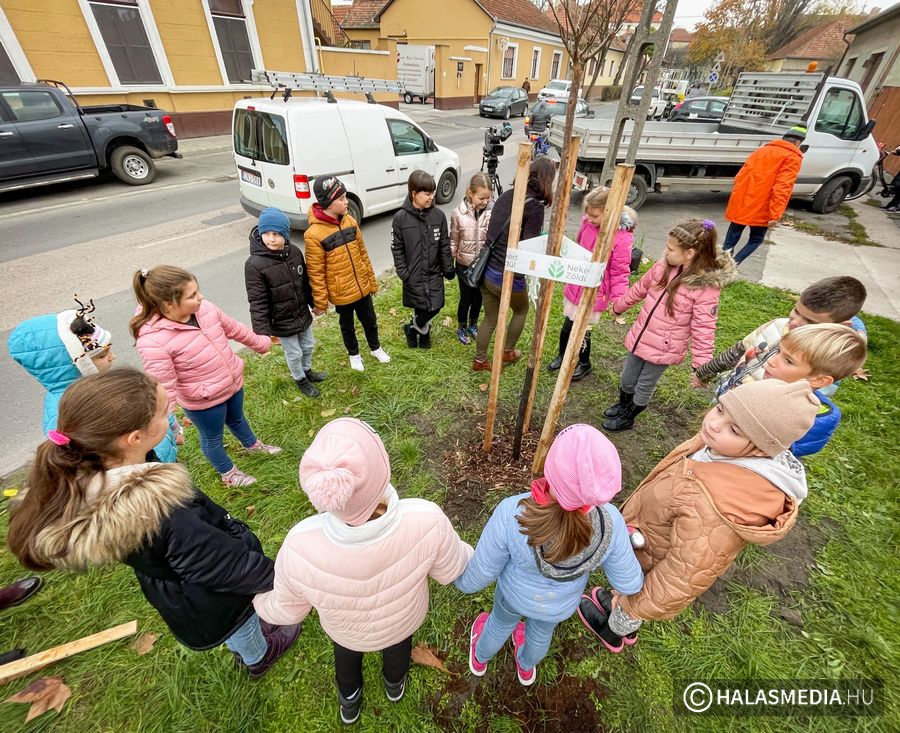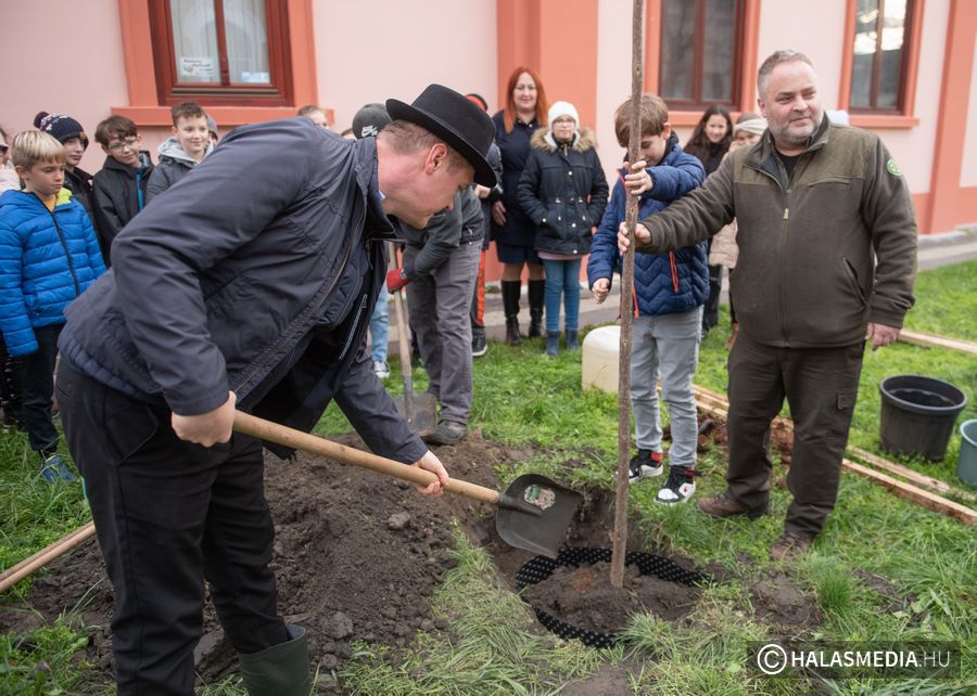 A hétfői Petőfi utcán történt faültetésen diákcsoportok is megjelentek, mi több még részt is vettek a fák elültetésében. Az érdeklődő kisdiákok a Kiskunhalasi Református Kollégium Központi Általános Iskolából érkeztek tanári kísérettel és nagy élvezettel hallgatták a faültetés tudnivalóit Greguss Viktortól.