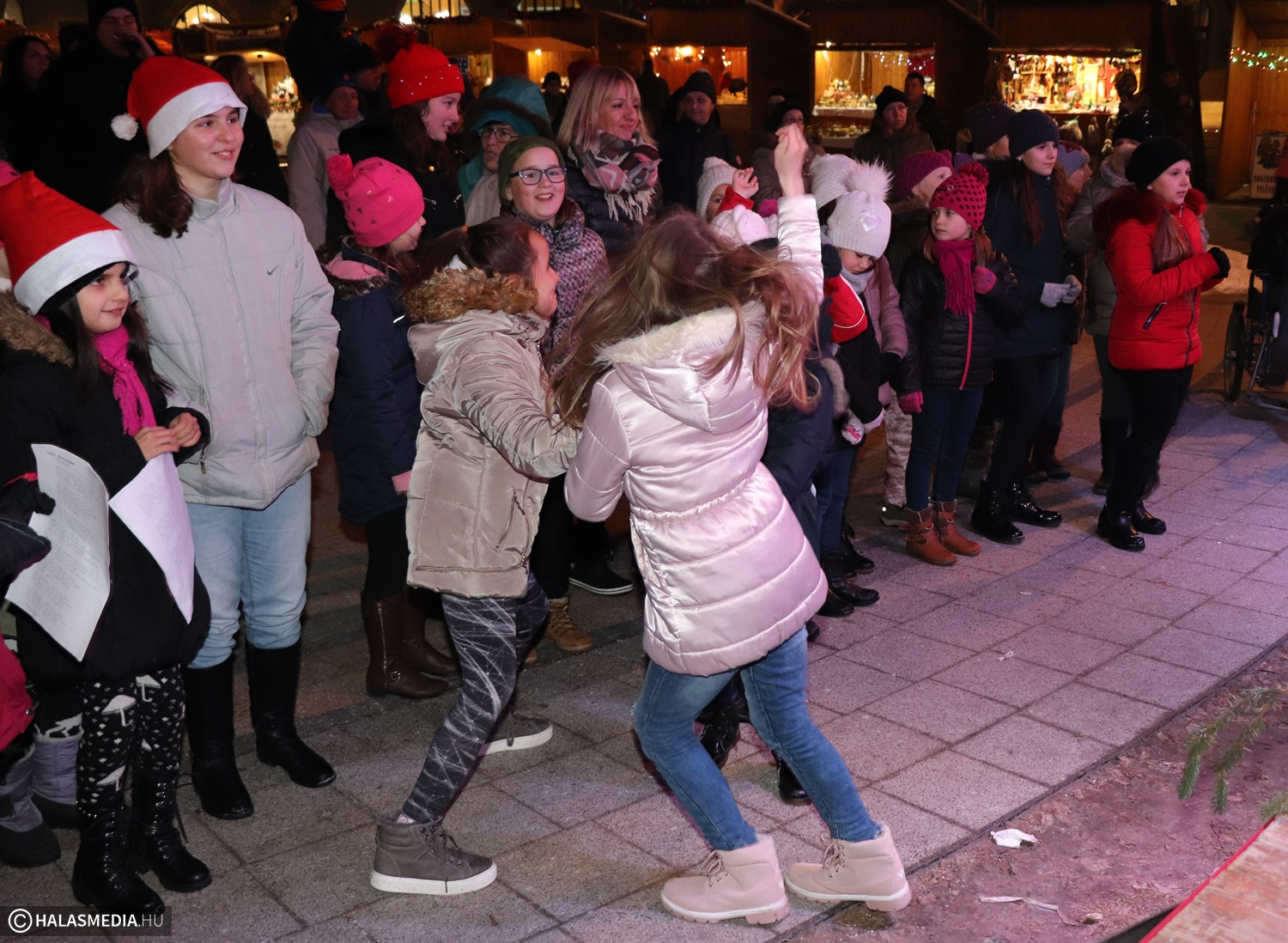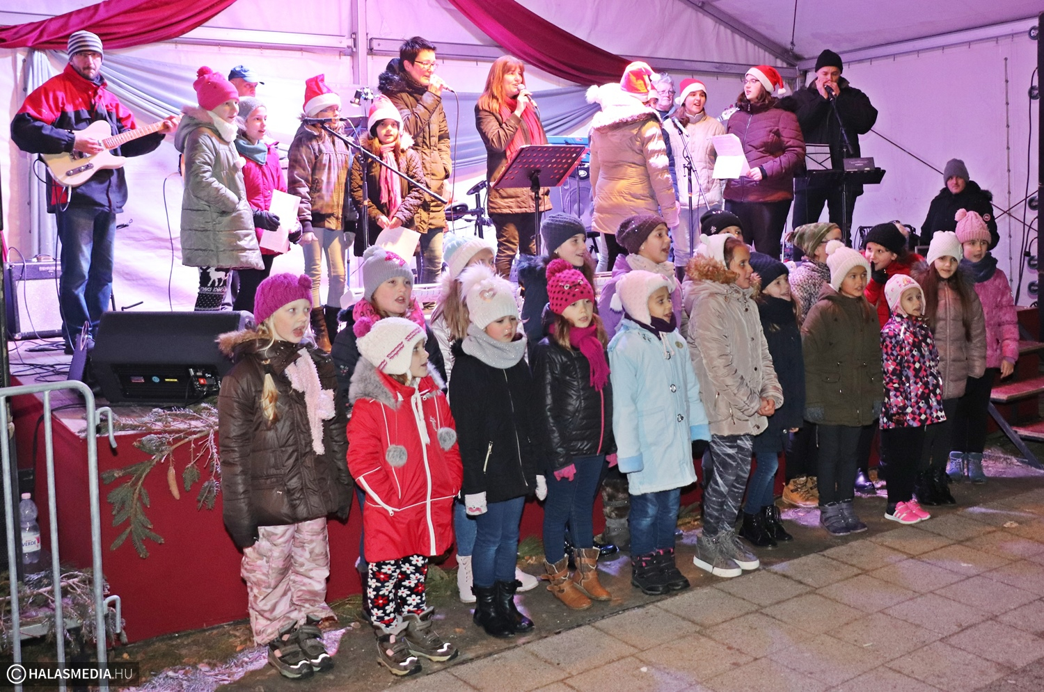 Tizenegyedik napjához érkezett az Adventi Főtér programsorozata. A szervező Halasi Média és Kultúra Kft. igyekszik minden délutánra, estére tartalommal megtölteni az ünnepváró hangulatot. Hétfőn kora este a Fazekas Mihály Általános Iskoláé volt a színpad, sőt a pódium előtti terület is. A havas környezethez illeszkedett a hőmérséklet is, talán az elmúlt másfél hét leghidegebb időszaka volt ez, ennek ellenére a közönség eljött és megnézte a programot.