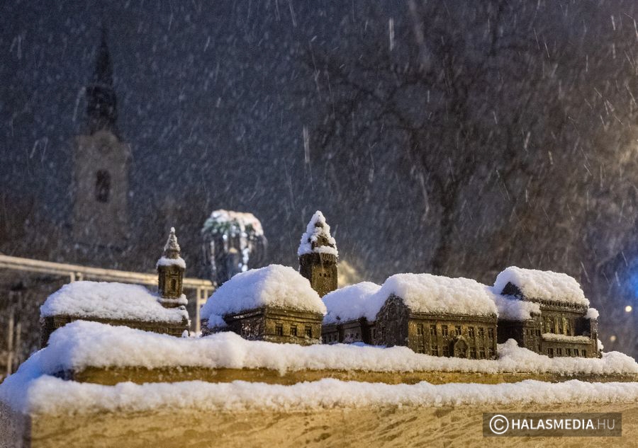 A tegnapi hóesés azonban jó alkalmat adott arra az esti órákban, hogy néhány ritkaság számba menő fényképet készítsünk a belvárosban. Az utakon szerencsére nem maradt meg a hó, bár a hókásás, latyakos útszakaszok jelentősen megnehezítették a közlekedést. Az utak melletti tereken megállt a hó és nyomokban ma délelőtt is látható városunk területén.