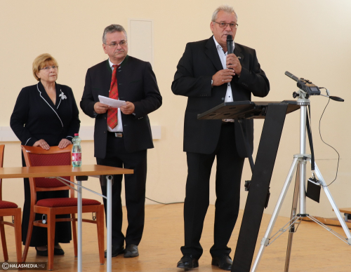 Herbert Bauch dürnkruti, Albert Kridlo jedensteigeni, Fülöp Róbert kiskunhalas polgármester, Péter Anna tolmács és Szegletes László egyesüéeti elnök (balról-jobbra)