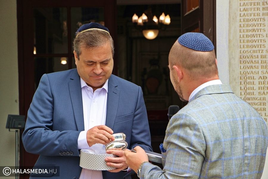 A köszöntőt követően dr. Róna Tamás főrabbi kapott szót, aki elmondta, ők is minden nap imádkoztak Bányai Gábor gyógyulásáért. A vallási vezető egy ajándékot is átnyújtott. Egy, névre szóló, gravírozott édességes dobozt hozott az országgyűlési képviselőnek.