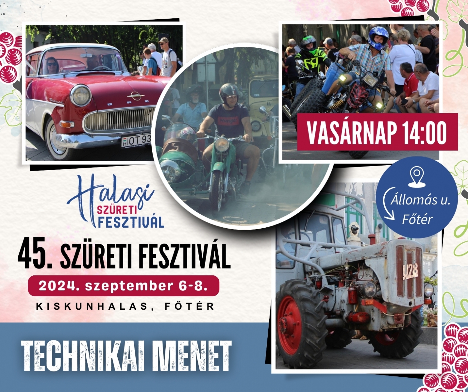 Vasárnap 13 órától a Lyra együttes zenél a főtéren, a járművek felvonulása, vagyis a technikai menet 14 órakor indul. A technikai menetben kerékpárosok, motorosok, veterán járművek, régi traktorok vonulnak fel, de a menetben ott lesz a városnéző kisvonat is.