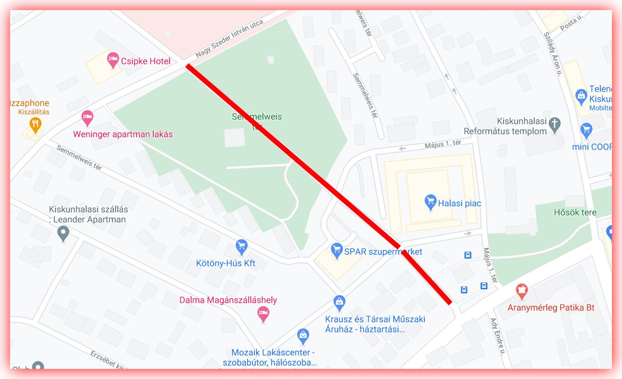 Október 8-án, csütörtökön délután terv szerint 13-15 óra között forgalomirányítás mellett lehet majd közlekedni és részleges lezárásokra kell készülni Kiskunhalason, a Május 1. tér, valamint a Semmelweis tér Szász Károly utca és Nagy Szeder István utca közötti szakaszán.