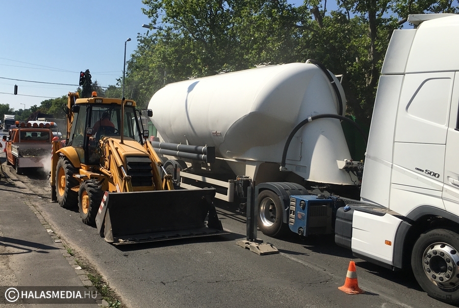 Még figyelmesebben kell közlekedni az 53-as főút, Park Áruház előtti szakaszán. A Kossuth utcai csomópont és a víztorony között torlódásra kell számítani, mivel felújítják a megsüllyedt, kátyús aszfaltot. A munkálatok hétfőn reggel kezdődtek, a Magyar Közút Nonprofit Zrt. hivatalos oldalán közzétett tájékoztatás szerint a korlátozás délután három óráig lesz érvényben. A jelzőlámpák működnek, a sofőrket jelzőőr segíti. A Kossuth utcáról, az 53-as főút déli részéről, illetve a benzinkút irányából érkezőket is tábla figyelmezteti a munkálatokra.