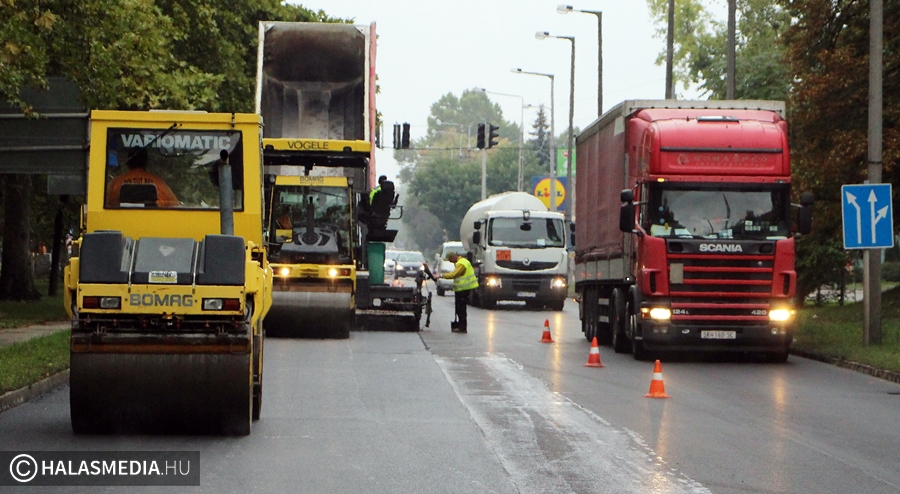 - Az 53-as számú főút Kiskunhalas belterületi részén, összesen 4424,68 négyzetméternyi területen (Sóstó melletti útszakaszon, a Dong-éri csatornánál, a Lidl bevásárlóközpont és a lámpás gyalogátkelőhely között) a burkolat erősen elhasználódott. A kopóréteg javítását végeztük marás-visszaaszfaltozásos technológiával. A múlt héten volt a felső aszfaltréteg eltávolítása, majd erre a hétre ütemeztük az új aszfaltburkolat beépítését. Az említett szakaszokon a burkolatmarás során kialakult szintkülönbség miatt 30 km/órás sebességcsökkentő forgalomkorlátozás volt érvényben. Az aszfaltozás szeptember 19-re és 20-ra terveztük, ezt követően kerül sor az útburkolati jelek felfestésére- tudtuk meg Kósa Veronikától, a Magyar Közút Zrt. megbízott kommunikációs osztályvezetőjétől.