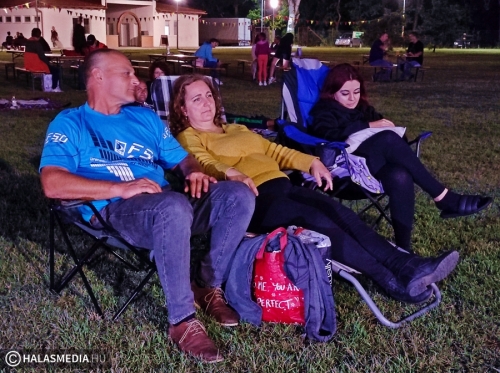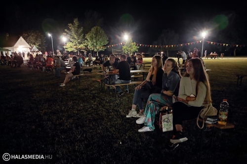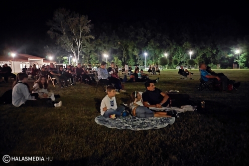 A legtöbben plédekkel, rágcsálnivalókkal, kényelmes napozószékekkel érkeztek a filmvetítésre. Pontban 21 órakor, az eredeti premiert követően, percre pontosan négy évtizeddel megkezdődött a halasi, szabadtéri mozizás.