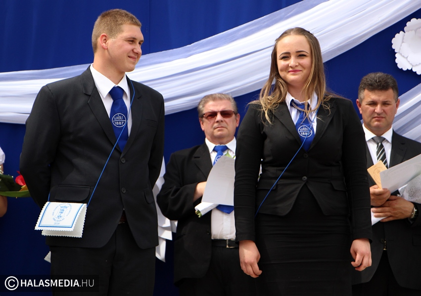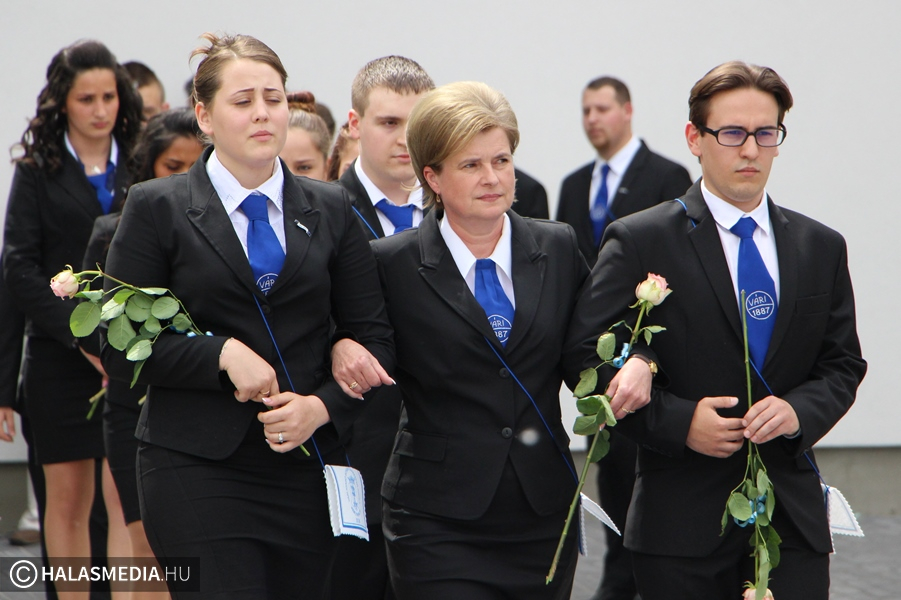ballagások sorában pénteken délután a Kiskunhalasi Szakképzési Centrum Vári Szabó István Szakképző Iskolája következett.Az ünnepségre egymás után érkeztek a búcsúzó osztályok, a KK/13/1 osztály (osztályfőnök: Márk Csaba Endre), 3/11/M osztály (osztályfőnök: Ficsúrné Bozsóki Zsuzsanna), a 33/11/L osztály (osztályfőnök: Dora Roland), a 3/11/I osztály (osztályfőnök: Bartha József Dániel), a 3/11/G osztály (osztályfőnök: Petrovics Gábor), valamint a 3/11/H (osztályfőnök: Fárbásné Kiss Mária). A végzős diákok nevében Kun Mirjam búcsúzott egy verssel. Szabó Edina igazgatónő átvette a ballagó tarisznyát, majd megtartotta beszédét.