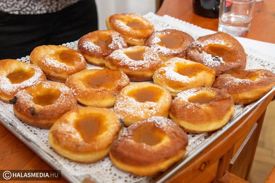 A rendezvényen folytatásul tényleg a farsangi fánké lett a főszerep. Mondovics József cukrász, szakács, szakoktató és csapata szalagosat készített a jelenlevőknek. A közepén lekvárral, a tetején porcukorral kínálták.