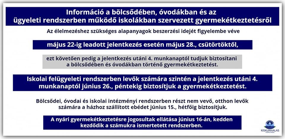 A kormány döntése alapján már jövő héten újraindulhat a teljes létszámú bölcsődei és óvodai nevelés a vidéki településeken. Ennek megszervezése, az étkezés biztosítása nem egyszerű feladat, ezen dolgoznak most Kiskunhalason is. Fülöp Róbert polgármester fontos közleménye ebben a témában az alábbiakban olvasható.