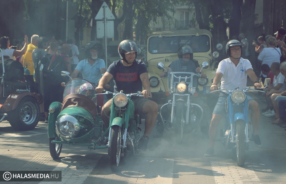 A 44. Halasi Szüreti Fesztivál vasárnapján idén is megrendezték a technikai menetet. A Halasi Városmenedzser Kft. szervezésében több autós, kerékpáros szervezet csatlakozott a programhoz. A halasi bringabarátok, a Konok Kunok motorosok, a Kántor András Egyesület veterán két- és négykerekűi, a szabadkai old timer klub, a kiskunhalasi Agrár Géptörténeti Egyesület tagjai mellett idén a kiskunhalasi mentőállomás, a kiskunhalasi önkéntes tűzoltó egyesület, az OBI, valamint a Kiskunhalasi Technikai Sportbarát Egyesület is része volt a menetnek. Idén is a vasútállomásról indult a karaván, végig a Kossuth utcán, hogy aztán a Városháza utcán át a főtérre érkezzenek.