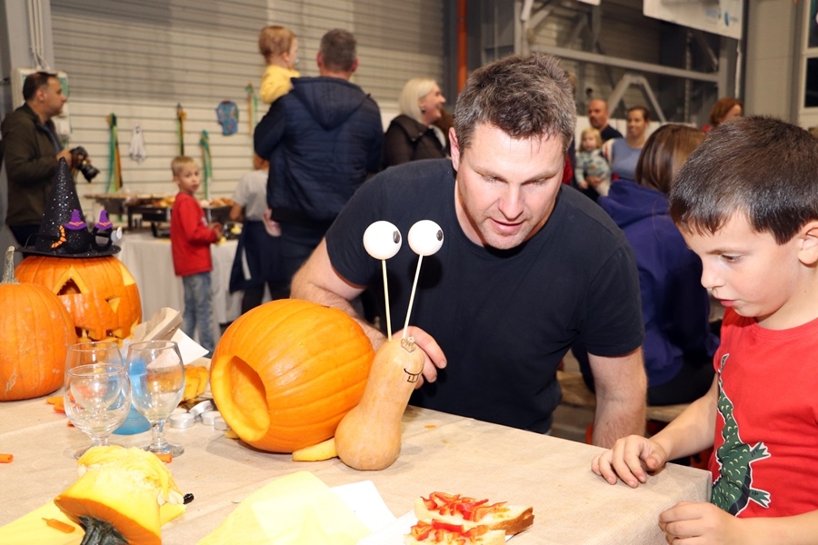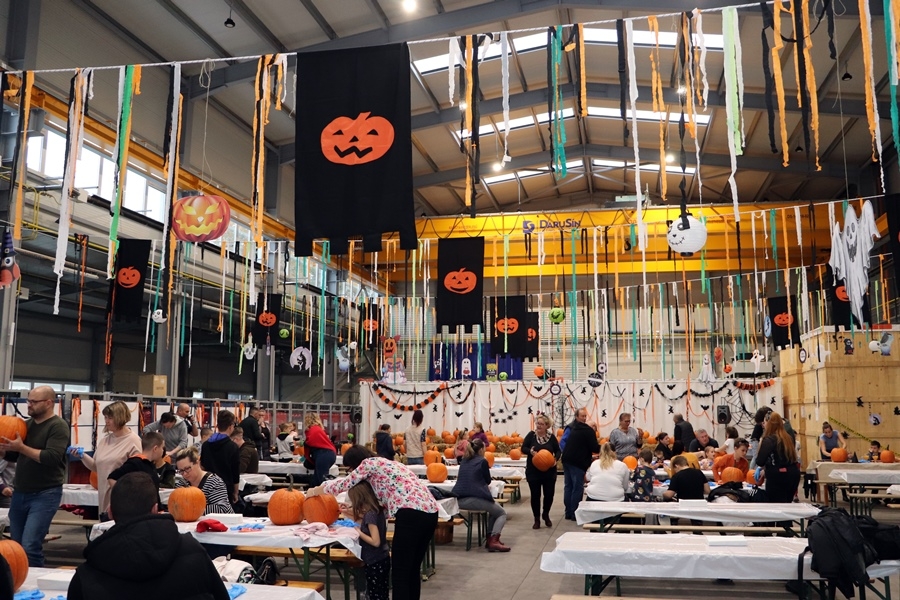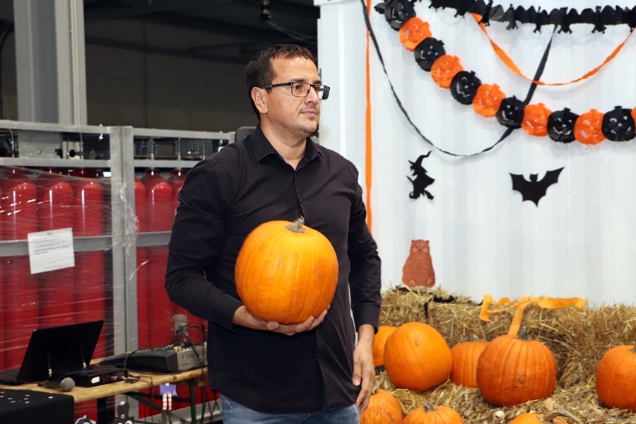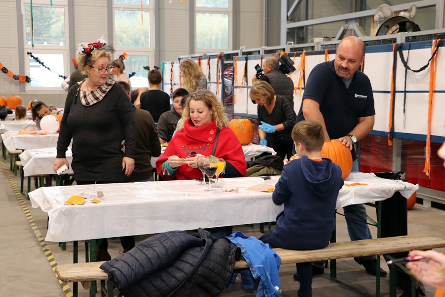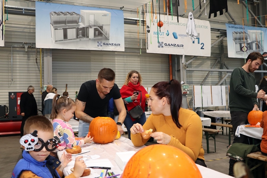 Ismét tökfaragásra várta a város és térsége lakóit a kiskunhalasi Ganzair Kft. A cég dolgozói az új üzemcsarnokuk területén alakították ki a programhelyszínt, hogy egy családi rendezvényen fogadhassák a baráti társaságokat. A rendezvényük minden esztendőben egyre több embert szólít meg, így idén is kiderült, hogy bizony, a nyolcadik rendezvényen már az egész csarnok területére szükség lesz.
