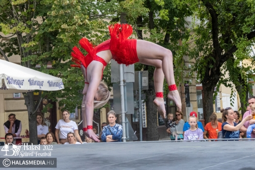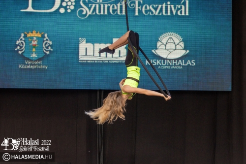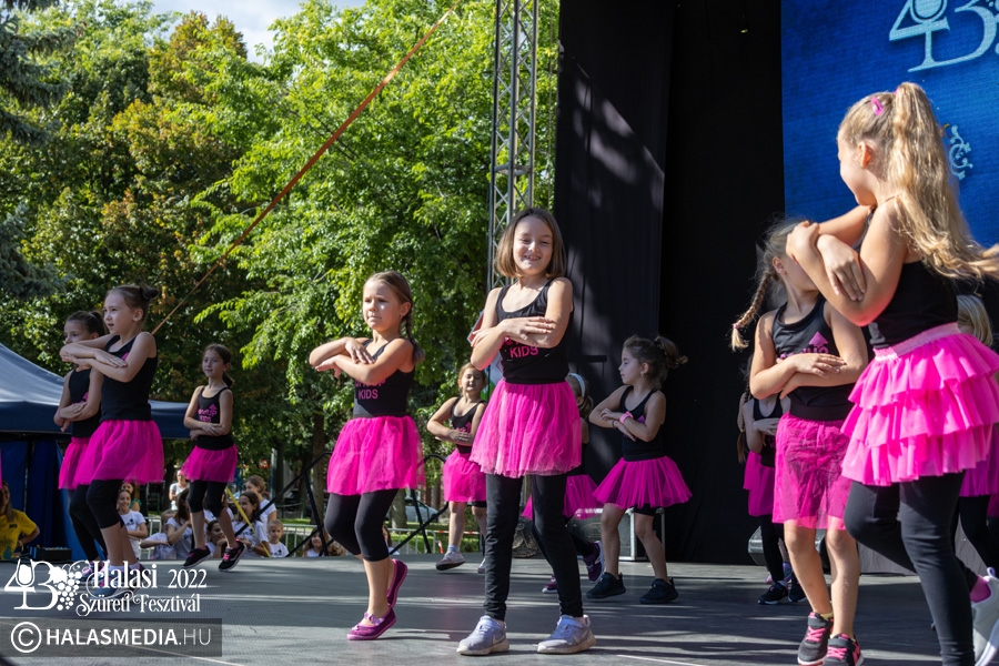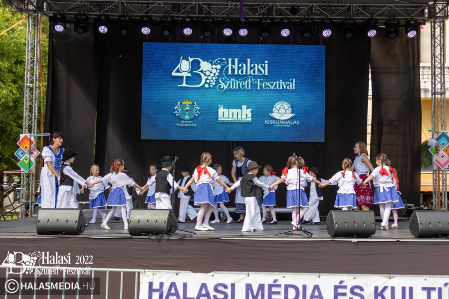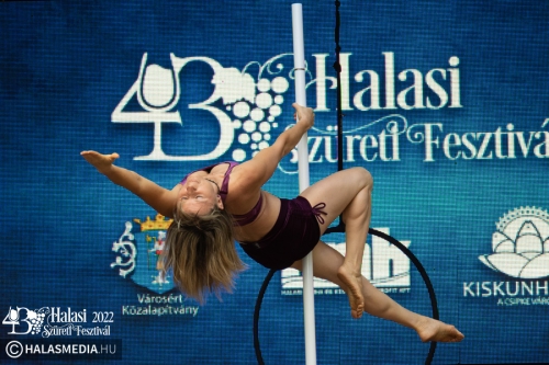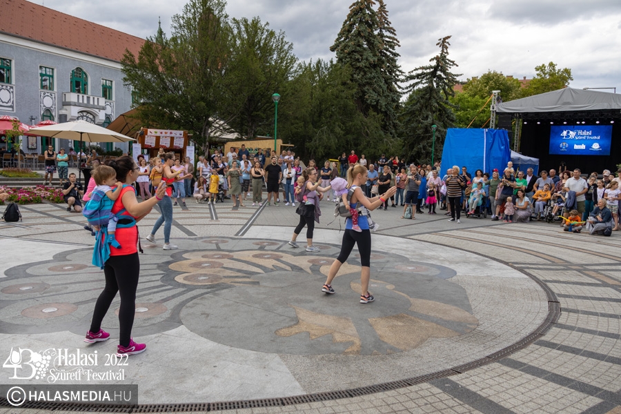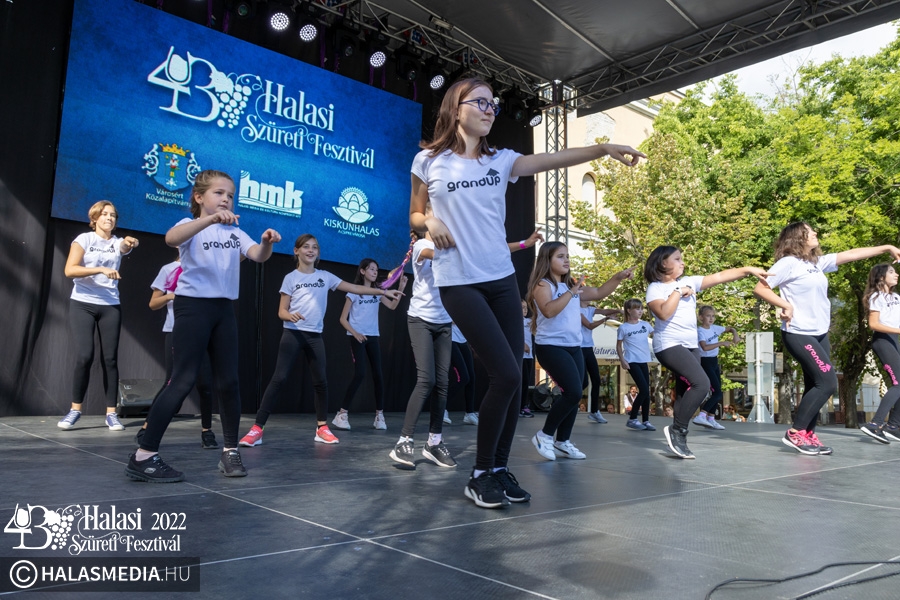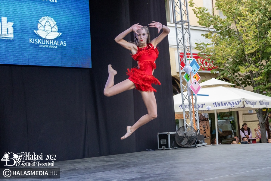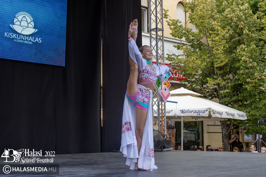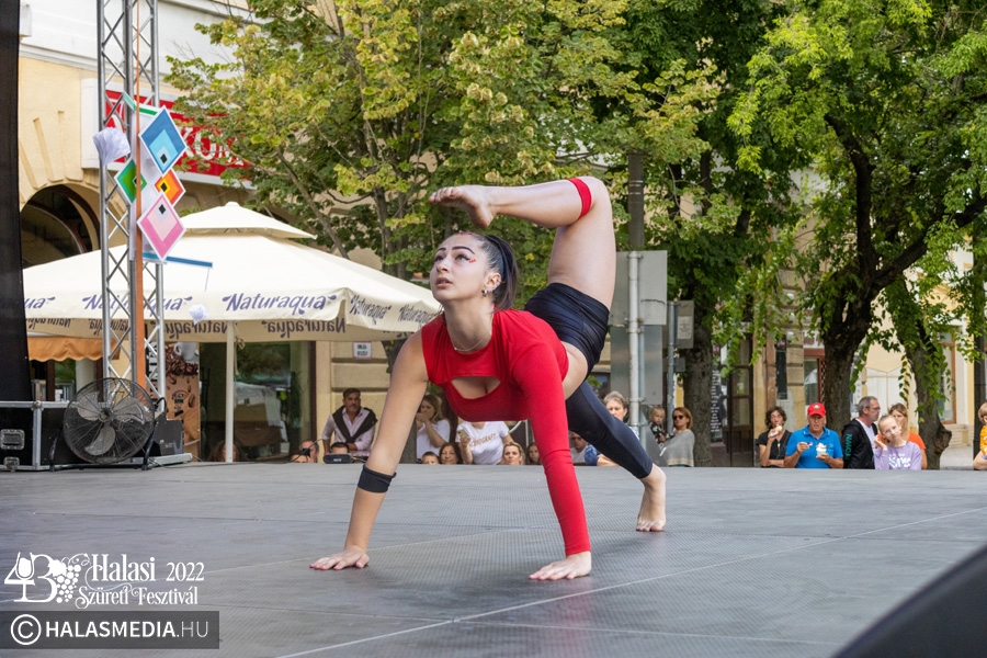 Ezt követően a színpadon folytatódtak a programok. A Pandora Pole & Hoop ámulatba ejtő bemutatója után a Lomb utcai óvoda kisgyermekei szüreti jeleneteket mutattak be. A GradUp Kids csapata és a Halas Fitness Egyesület is nagy tapsot kapott a közönségtől. A Maminbaba bemutatóra pedig a „főtéri páván” került sor.