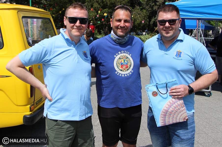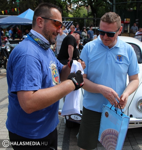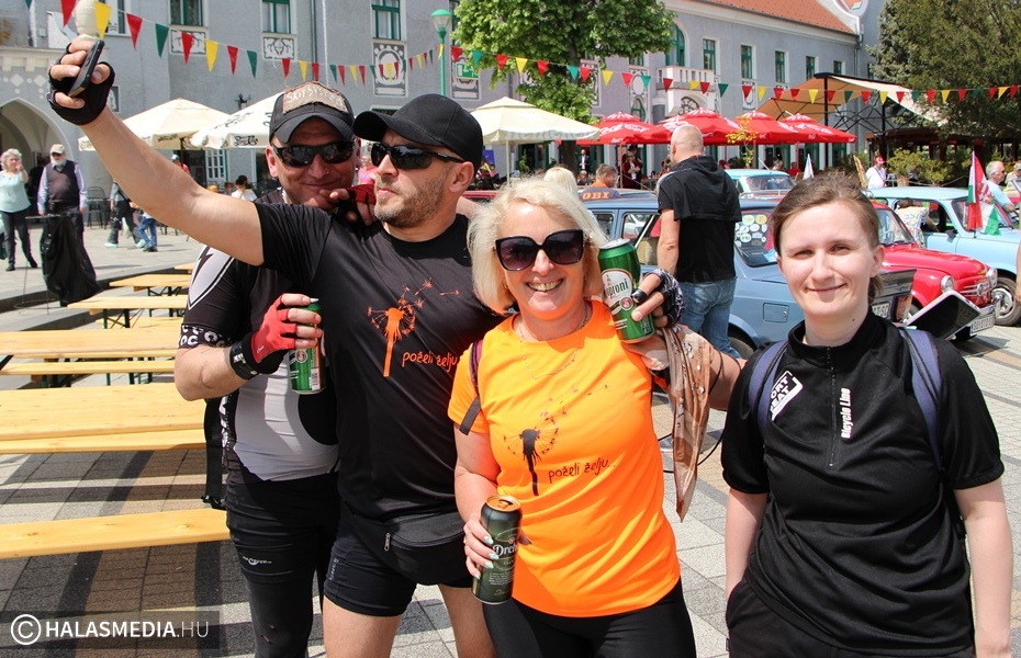 A Konok Kunok motorosok beérkezése után a nagyon népes kerékpáros csapatot – a Vajdaság több településéről érkezett bicikliseket és a Halasi Bringabarát Klub tagjait - Fülöp Róbert polgármester vezette fel, majd a veterán motorok és korábbi korok autócsodái gurultak be a térre. Sokan a határig elmentek a vendégek elé és együtt érkeztek meg a főtérre, ahol már várták őket a járművek iránt érdeklődők.