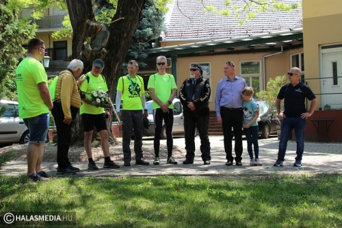Halas központjába beérkezve a csapat megkoszorúzta a Közösségek Háza udvarában lévő emlékfát, látogatást tettek a Thorma János Múzeumban, és részt vehettek a Nyárindító Főtérparty programjain. A Végh-kúriában a társszervezetek, vagyis a Halasi Bringabarát Klub, a Konok Kunok Motoros Egyesület és a Kántor András Veterán Autós és Motoros Egyesület tagjai ebéddel vendégelték meg a vendégeket. A finom falatok után egy városismereti túrát tettek a városban a kerékpárosok, majd azzal búcsúztak el egymástól, hogy augusztusban Szabadkára várják a halasiakat.
