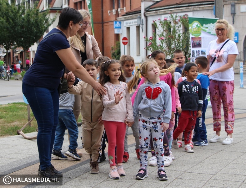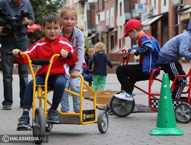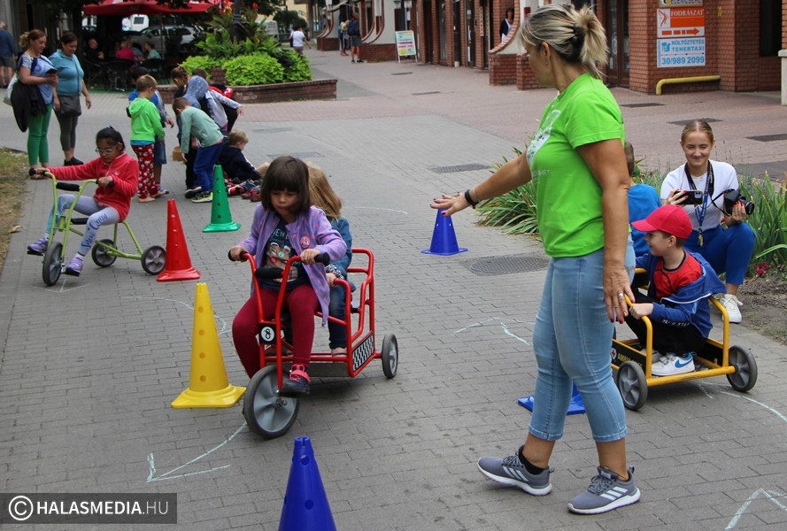 Az óvodásoké volt a főtér nagy része. Olyan helyeken rajzolhattak, kerékpározhattak, szaladgálhattak, ahol a hétköznapokon autók járnak. Népszerű volt a kerékpáros akadálypálya, az érzékenyítő ösvény, valamint a mászófal is. A Zöld Közösségért Természetbarát Egyesület standjánál is érdeklődő ovisokkal találkozhattunk. Halápi Sándor velocipéd világbajnok segítségével bárki kipróbálhatta, hogy milyen is ennek a különleges kétkerekű nyergében ülni. A védőnők finom, egészséges étkekkel készültek, a vöröskeresztnél pedig az újraélesztés alapjaival ismerkedhettek meg a kislányok, és a kisfiúk. A rendőrség közlekedési tanácsokkal látta el az óvodásokat, de ki lehetett próbálni a bevetési egység sisakját is. A Koliken Kft. pedig többféle kerékpárral érkezett, ezekkel bárki tehetett egy-két kört. A program délután a környezetvédelmi és az ügyességi versennyel folytatódik.