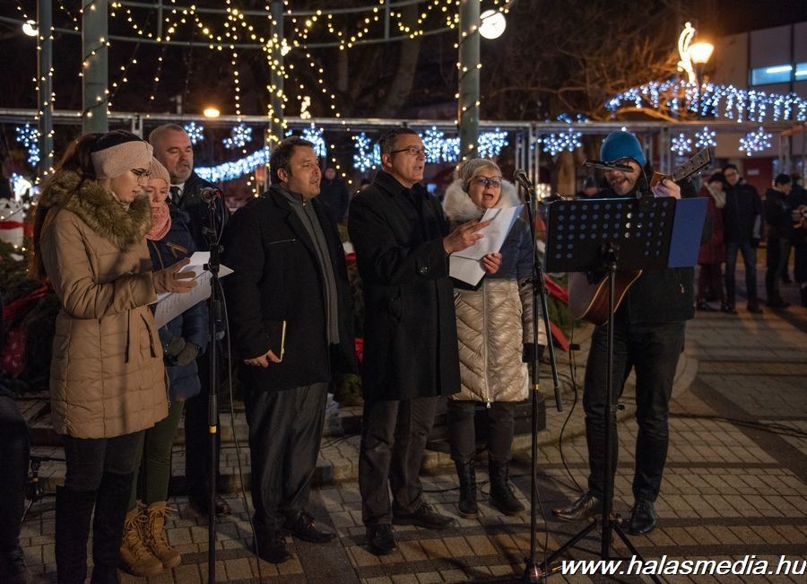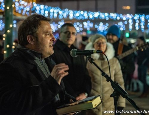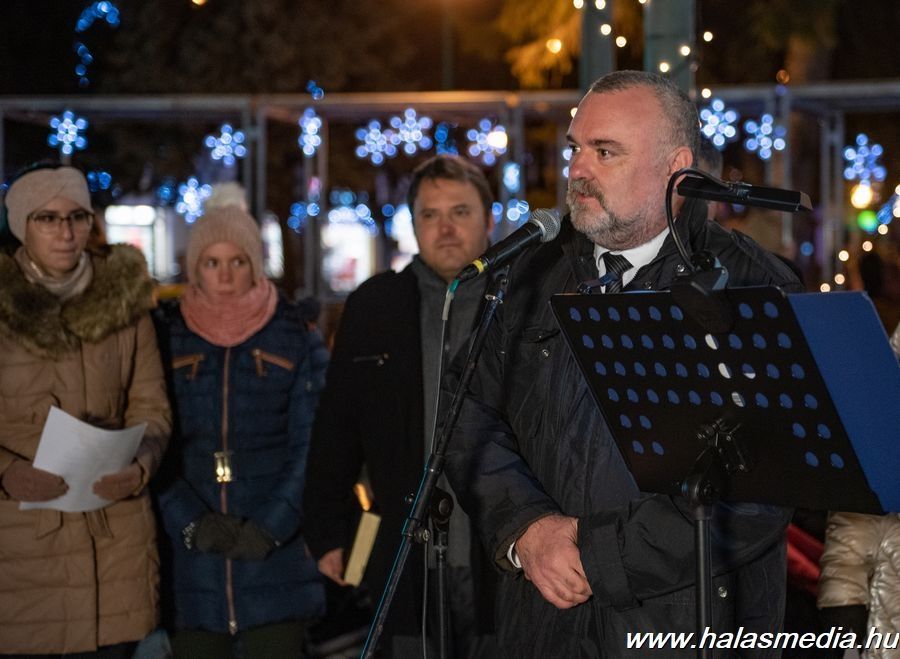 Kissé szeles időjárás fogadta azokat az érdeklődőket, akik advent negyedik vasárnapján besétáltak a halasi főtérre. Ezen a napon, csakúgy mint előtte három alkalommal ünnepi gyertyagyújtásra került sor. Ezúttal a baptista közösség adott kedves, hangulatos műsort. Széll Csaba pedig karácsonyi gondolatait mondta el. - Nyissuk ki a szívünket, van még pár napunk. Ne csak a karácsony miatt, hanem az életünk miatt. A társadalmunk miatt, a gyermekeink miatt, a családunk miatt. Azért, hogy Isten szeretetével gazdagodjunk, és ezt tudjuk továbbadni - fogalmazott. A műsort követően Friebert Tibor lelkész gyújtotta meg a koszorún a negyedik gyertyát.
