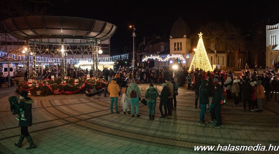 Advent negyedik vasárnapjának estéjén is megtelt a halas főtér. Az ünnepi műsort a baptista közösség adta, Széll Csaba karácsonyi gondolatait hallgathatta meg a közönség, majd Friebert Tibor lelkész meggyújtotta a negyedik gyertyát. Az est fellépője Soltész Rezső volt, aki a hangulathoz tökéletesen illeszkedő dalokat énekelt, de természetesen a nagy sláger, a Szóljon hangosan az ének sem maradhatott ki a repertoárból.