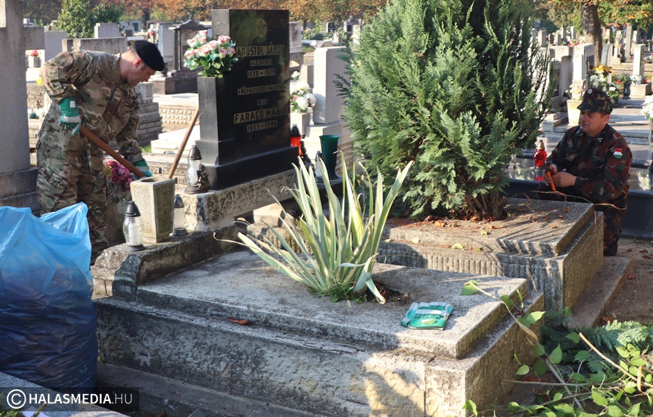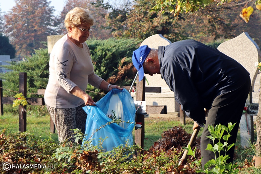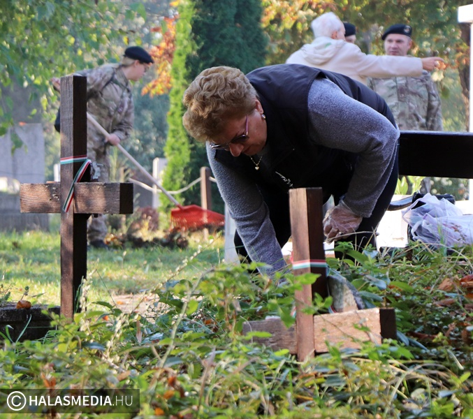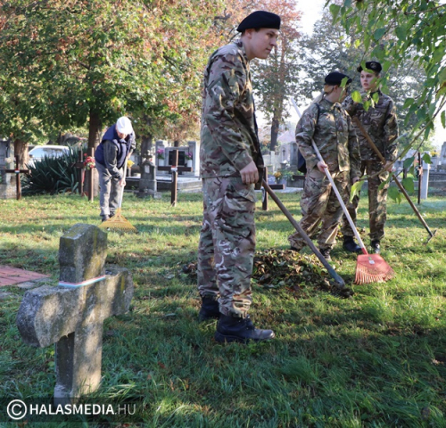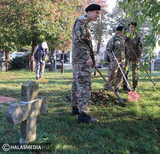 Közeleg a Mindenszentek és a Halottak Napja. Ennek apropóján (is) önkéntes munka keretében, több szervezet együttműködésében dolgos kezek szépítették a katonai sírokat és azok környékét. Az alsóvárosi katolikus és a református temetőkben is akadt tennivaló, de szerencsére szorgalmas munkaerőből nem volt hiány. Ismét a Kuruc Vitézek Nyugállományú Egyesület tagsága tüsténkedett, amelynek besegített az önkéntes területvédelmi tartalékos század és a Kiskunhalasi Szakképzési Centrum Dékáni Árpád Szakgimnáziumának és Szakközépiskolájának rendészeti tanulói is szerszámokat ragadtak.